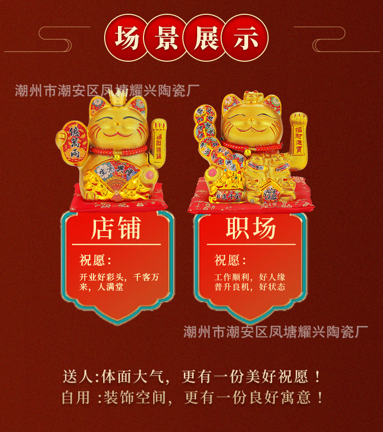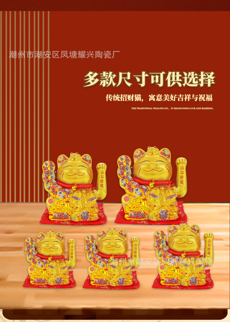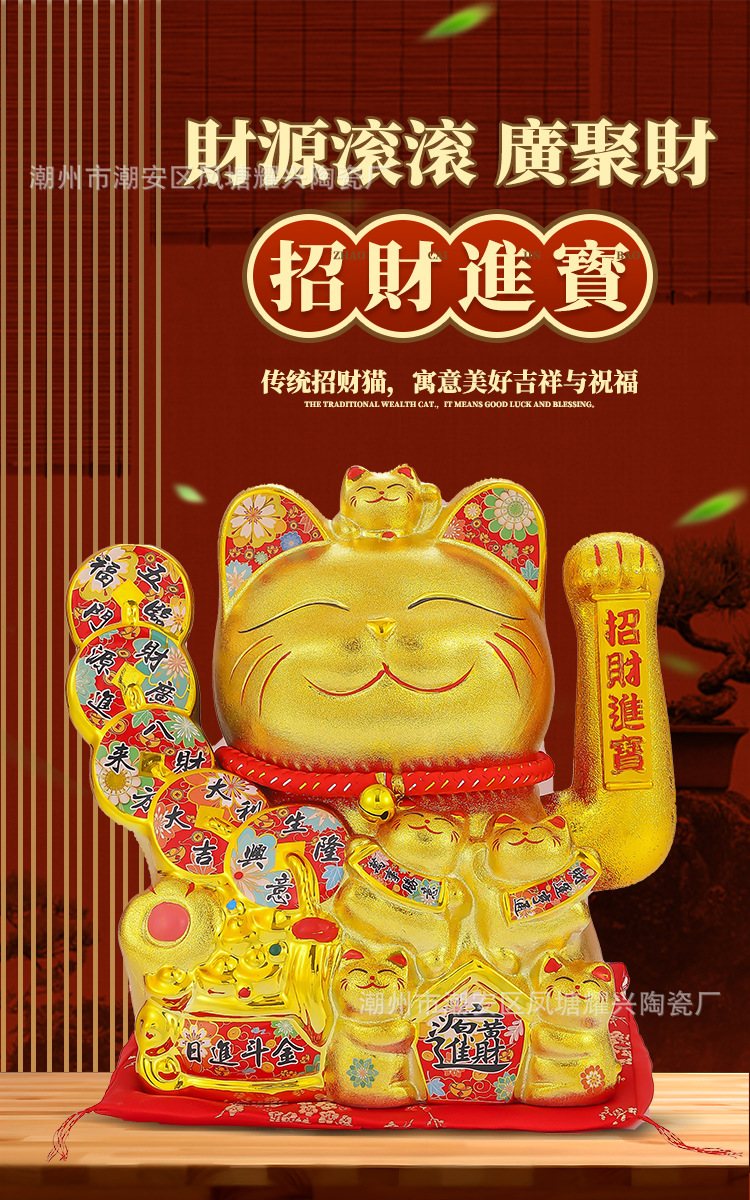 特大号陶磁器招財揺り手猫贈答品店開業プレゼント客間装飾揺り手猫置物財源広