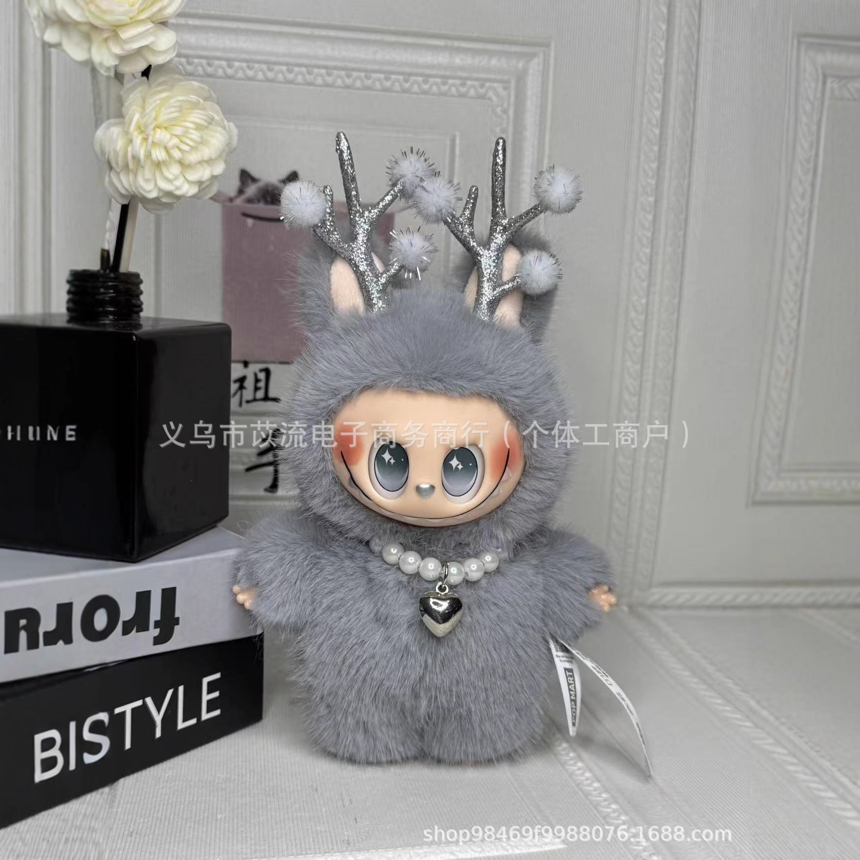 LABUBU--银麋鹿款拉布布圣诞节潮玩搪胶玩偶彩虹布布盲盒毛绒公仔