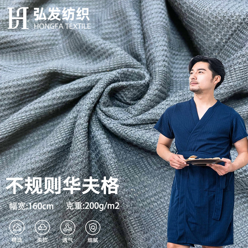 不規則なワッフルニット220gポリエステル綿蜂の巣格十字筋理凹凸ホテルバスローブ生地