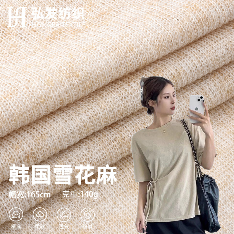 韓国スノーフレークリネン 140 グラム中空ウールポリエステルリネン 2 色肌に優しいニット春と夏の日焼け止め服底シャツ生地