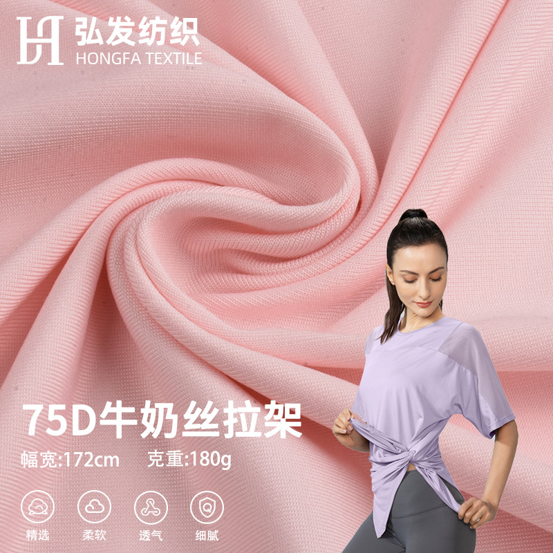 高弾75D牛乳糸引き架180gポリエステルアンモニア双磨肌感四面弾ライカ布下着ヨガ服生地