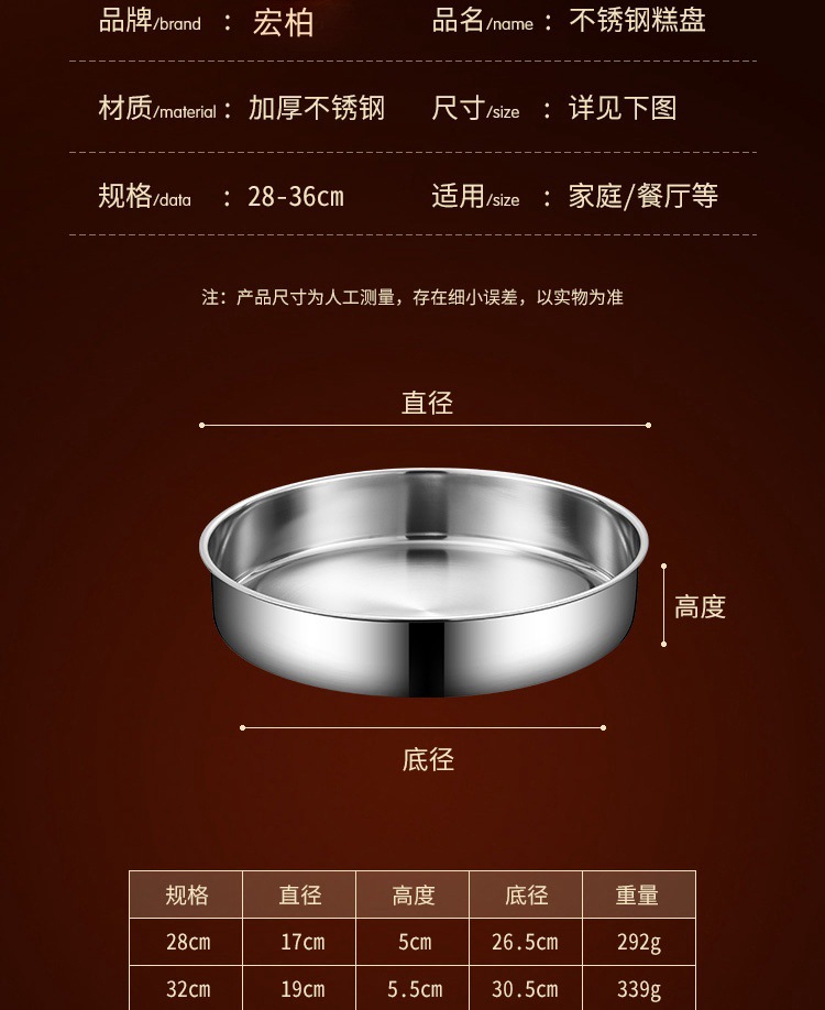 越境ステンレス304ケーキ皿食品級厚手ケーキ皿円形メニュー皿家庭ケーキ皿