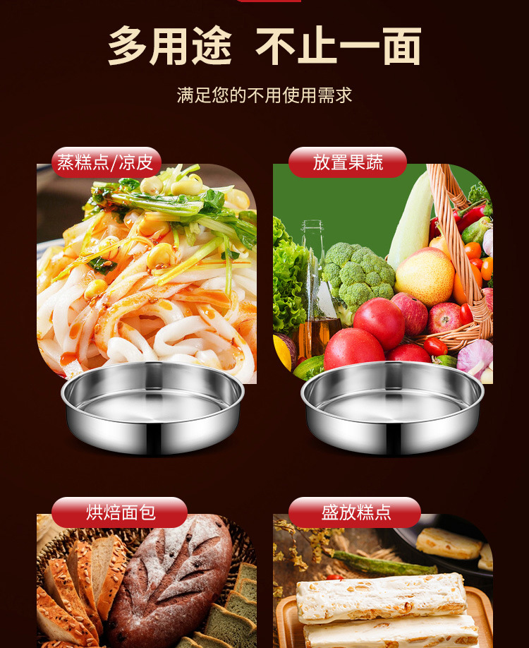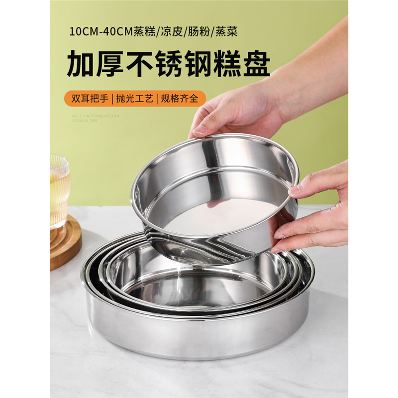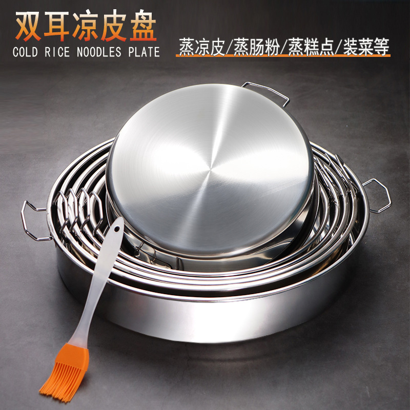 蒸し皿蓋付きステンレス蒸し餅凉皮商用大皿直身平底トレー深皿円形蒸飯円盤
