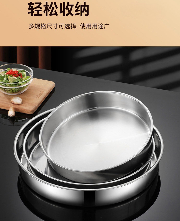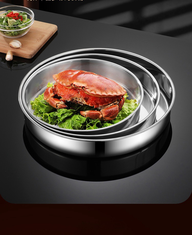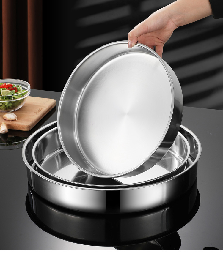 厚みのあるステンレス鋼の丸皿平底大皿家庭用蒸しプレート蒸しケーキプレート商業丸トレイ皿プレート鉄プレート