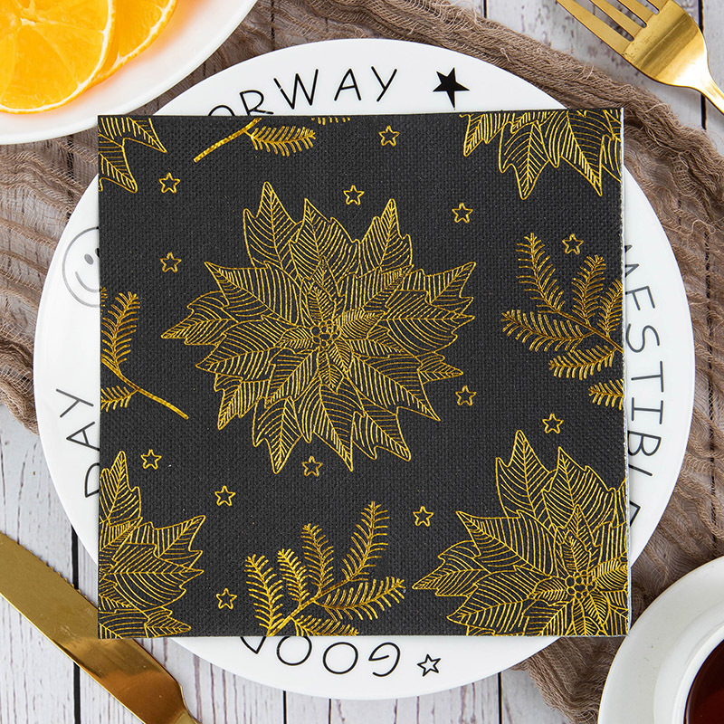 アマゾン箔押し花ナプキン金色プリントティッシュパーティー装飾カラーティッシュハンカチ紙