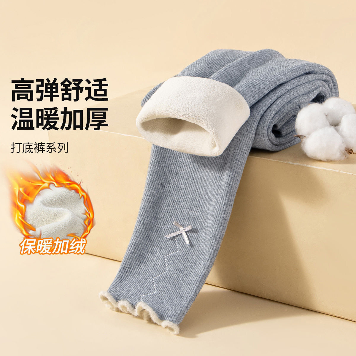 女童打底裤秋冬一体加绒儿童加厚保暖中小童外穿蝴蝶结洋气长裤子