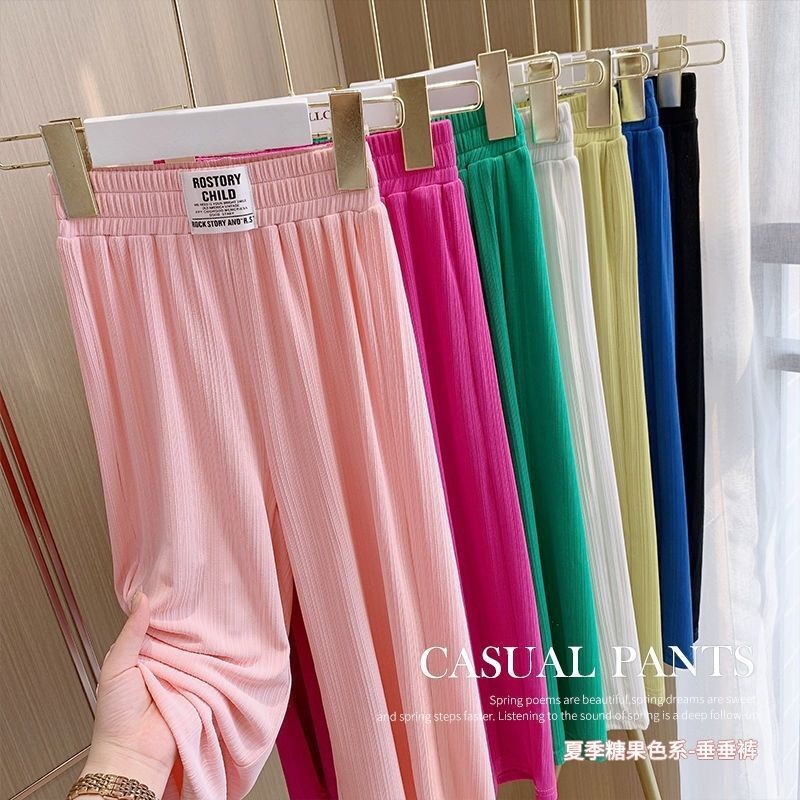 女の子の広い足のズボンの洋風の夏の薄いタイプの女の子の氷の糸の垂れ下がっているズボンの中の大きい子供のファッションのストレートなズボンの子供の赤ちゃん