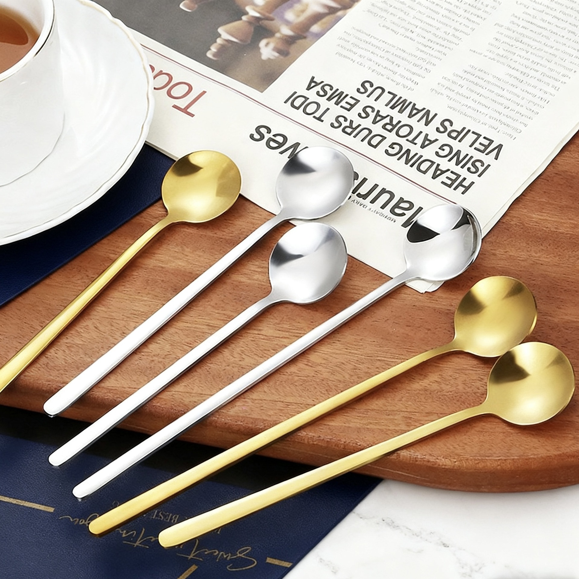 ステンレスの桜のスプーンの各種類の攪拌スプーンの木の葉のスプーンの金色の小さい丸いスプーンの短い柄のコーヒーのスプーンの長い柄のマグカップのスプーン