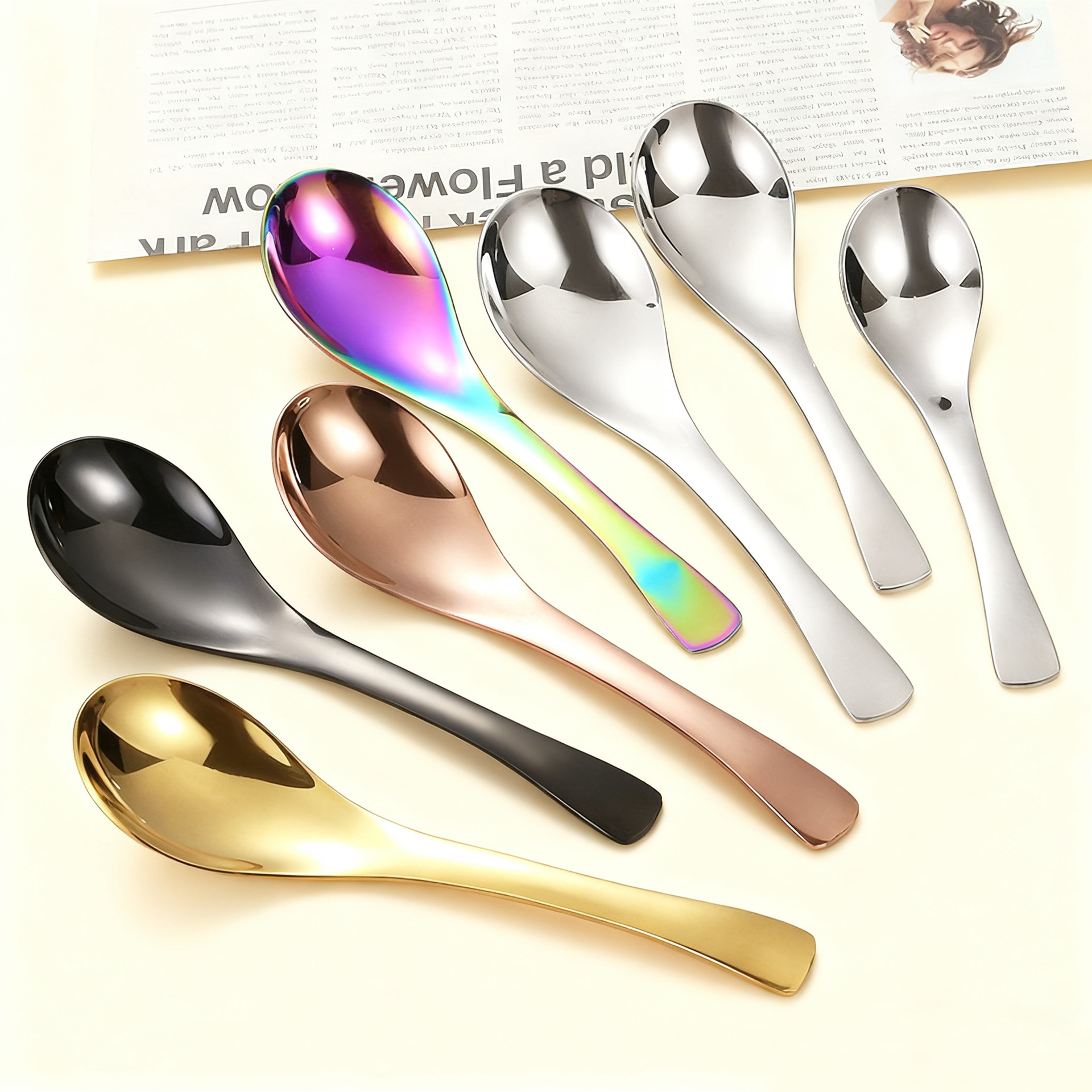 国境を越えたステンレス製アイスクリームスプーン甘いもの攪拌スプーン家庭用攪拌スプーンケーキスプーン高颜値コーヒースプーン