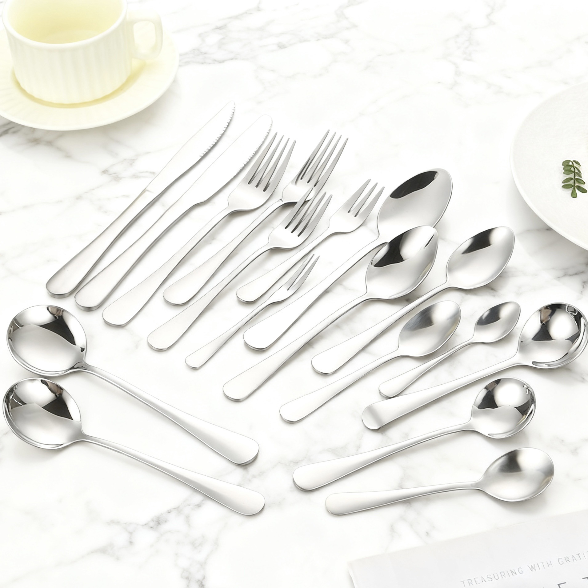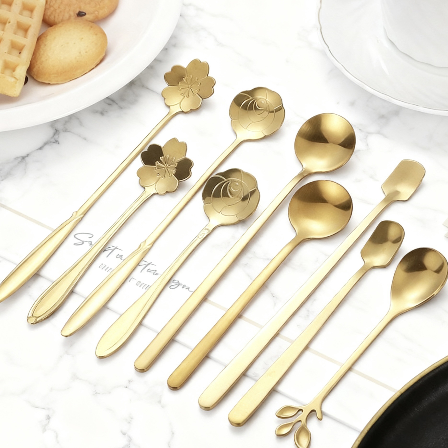 ステンレススプーンの大理石模様は磁器の取っ手に似せています。
