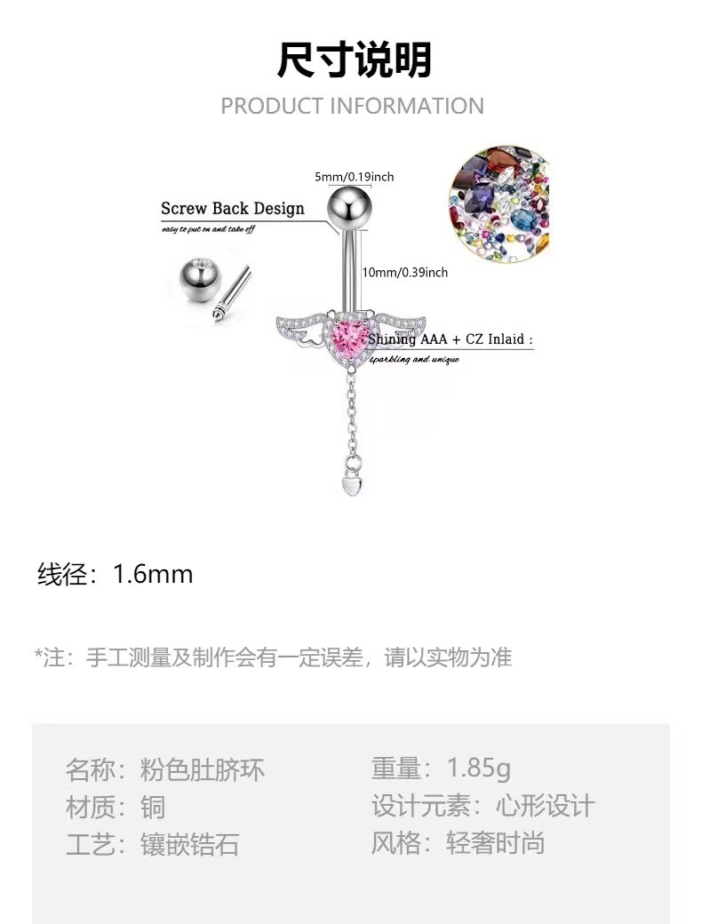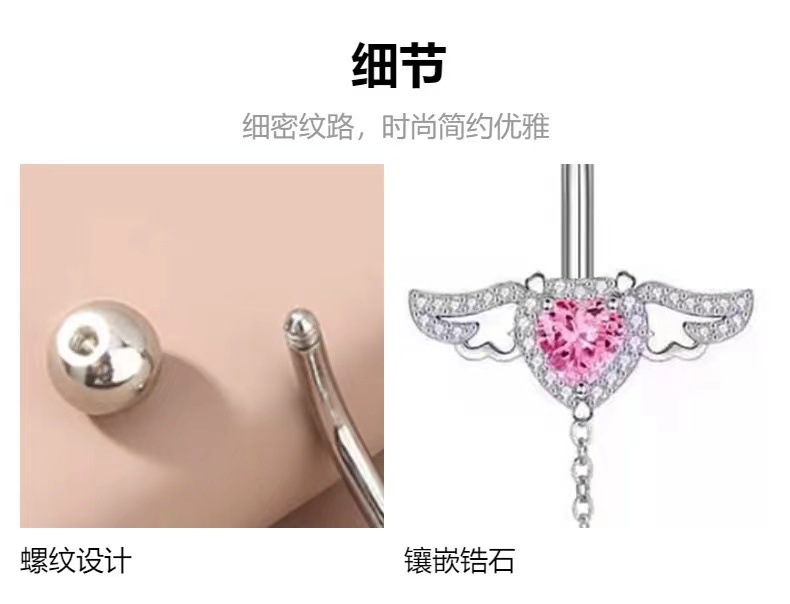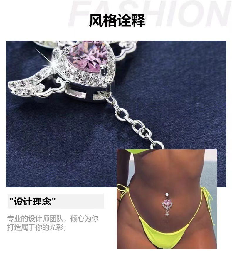 欧美热卖爱心翅膀水滴形肚脐钉时尚宫廷风锆石肚脐环穿刺饰品