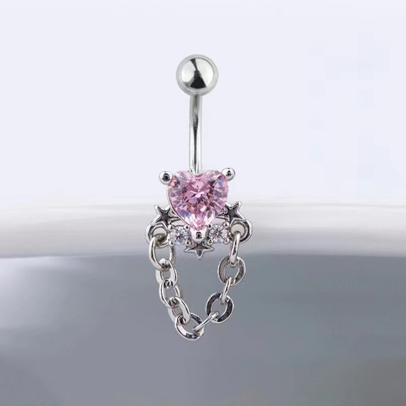 アマゾン欧米の人気ハート型ピンクジルコン臍環y2k風クロスボーダー穿刺アクセサリーオンライン卸売り