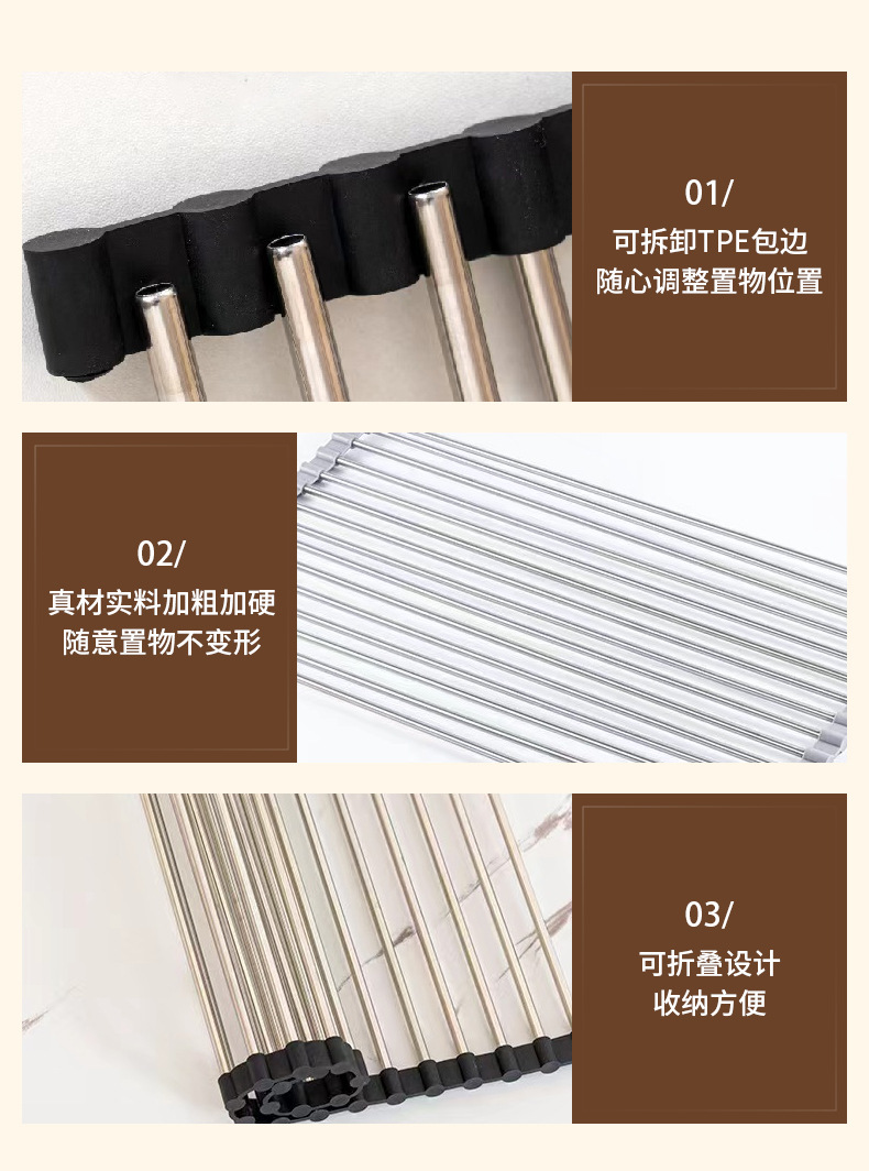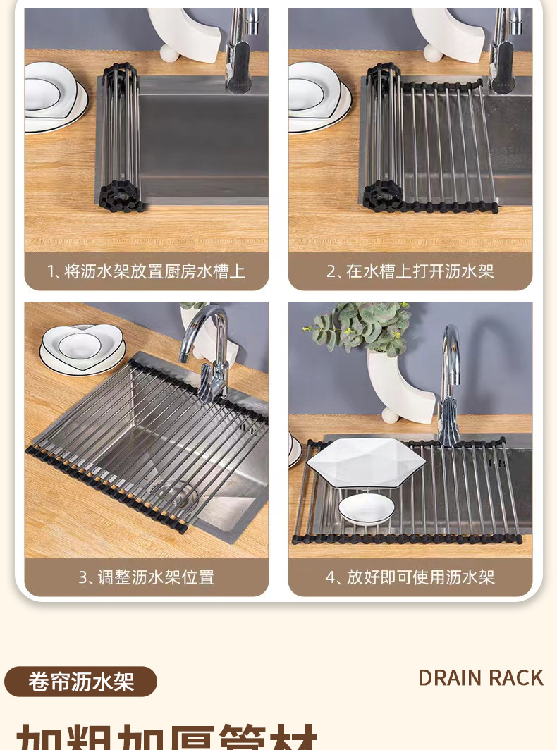 可折叠厨房水槽沥水置物架不锈钢收纳卷帘硅胶洗碗盆池置物碗筷架