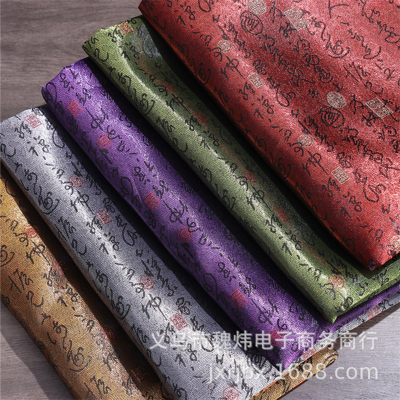 织锦缎书法字体古典布料中国风绸缎锦盒礼盒书面中式装饰面料批发