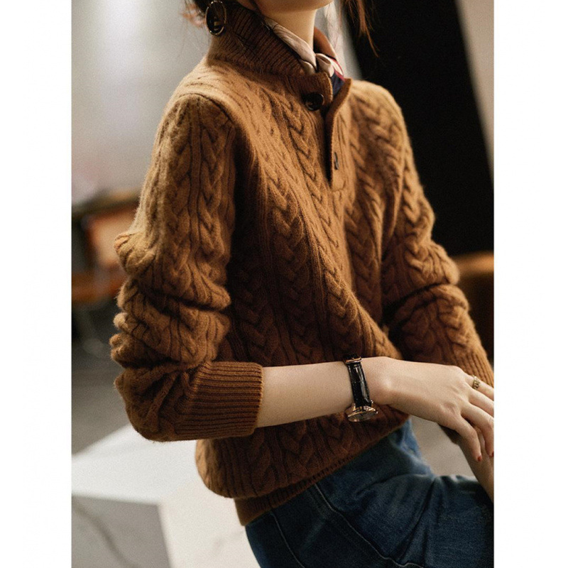 純色の麻花のセーターのニットの女性の長袖の頭の新型の復古の立襟のボタンのコートは底の上着を打ちます。