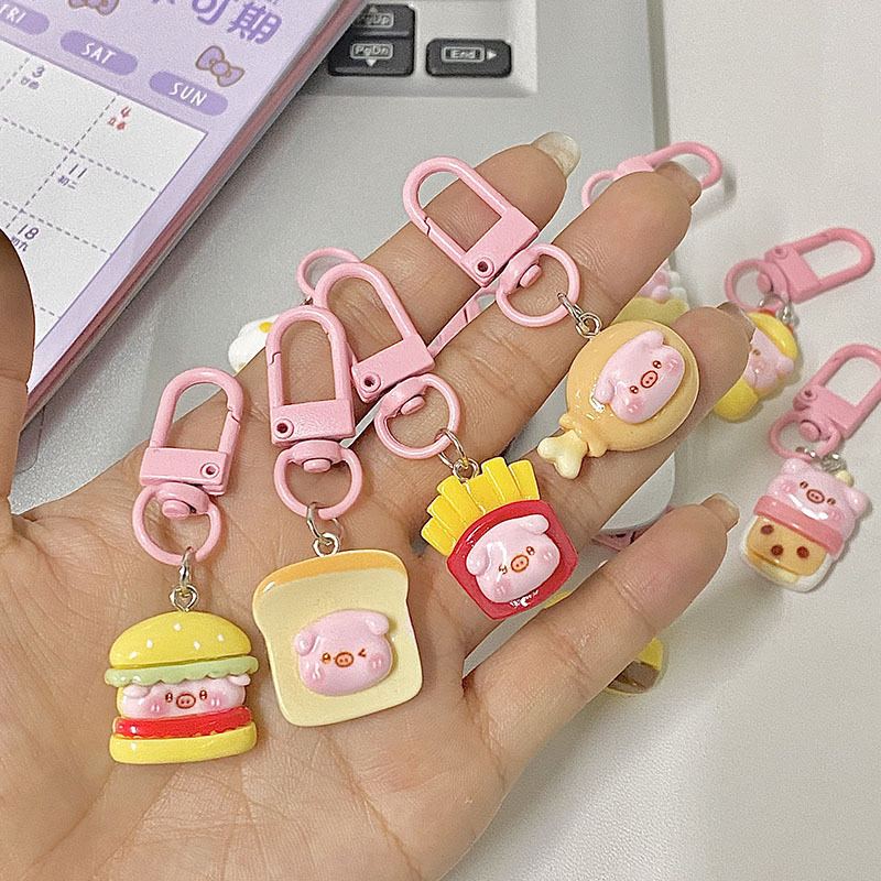 新款趣味食玩可爱面包牛角包钥匙扣原创树脂挂件包包挂饰小礼品