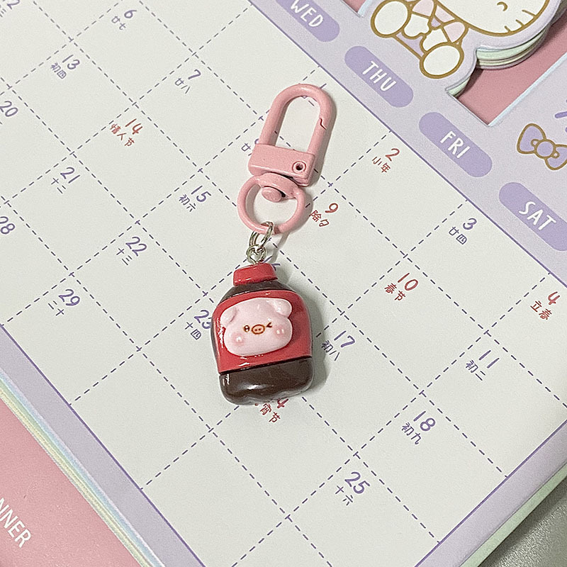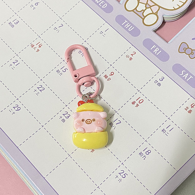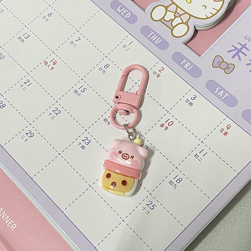 夏のきらきらしたピンクの鯛焼きペンダントinsの親友カップルのかばんにプレゼントのアクセサリーを飾っています。