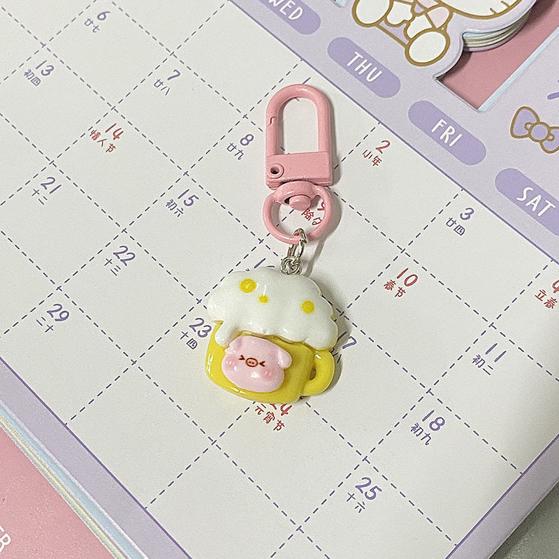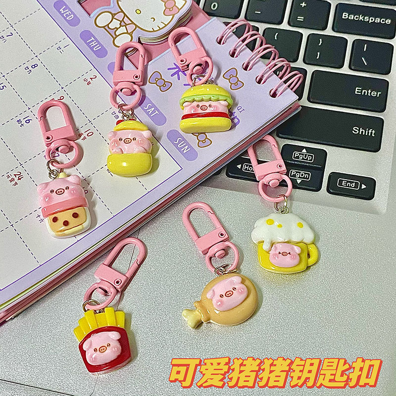 趣味のかわいいアニメのブタのキーはハンバーグのフライドチキンのビールを掛けます。
