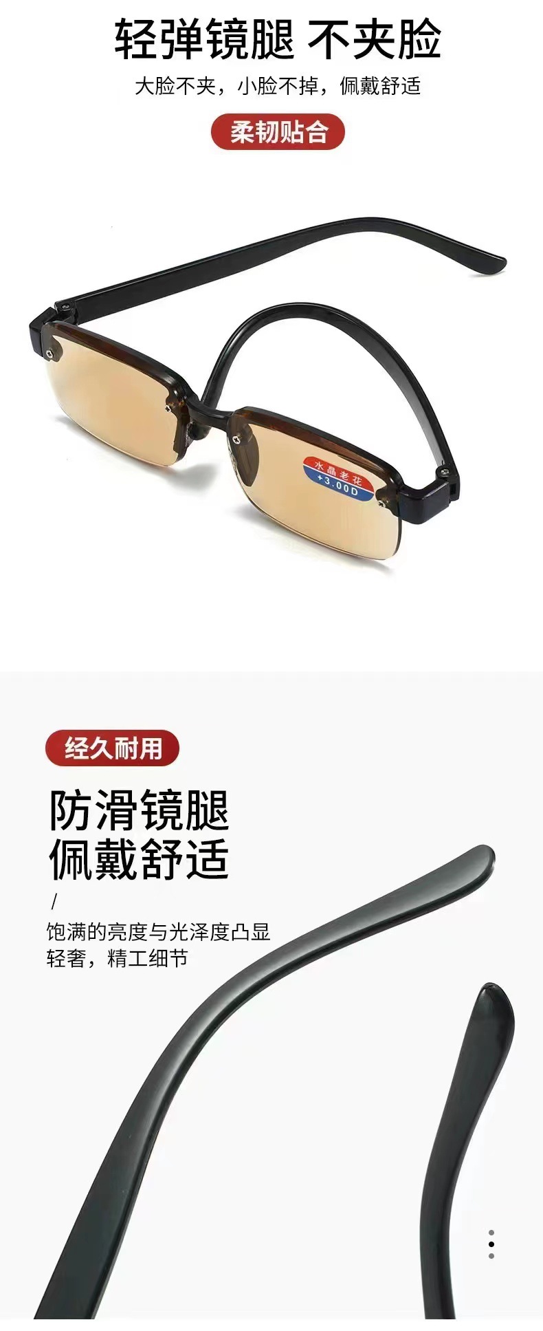 新款半框遮阳老视镜高清老花眼镜男女复古老花镜防蓝光自动变焦