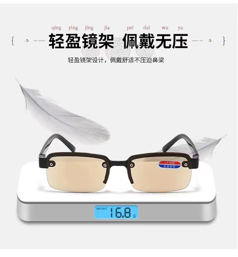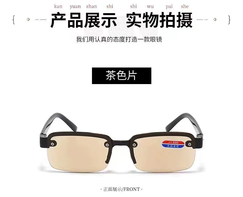 新商品のフレームレス老眼鏡男性正規品高精細茶色防ブルーライト清涼保護目中高年老光メガネ女性