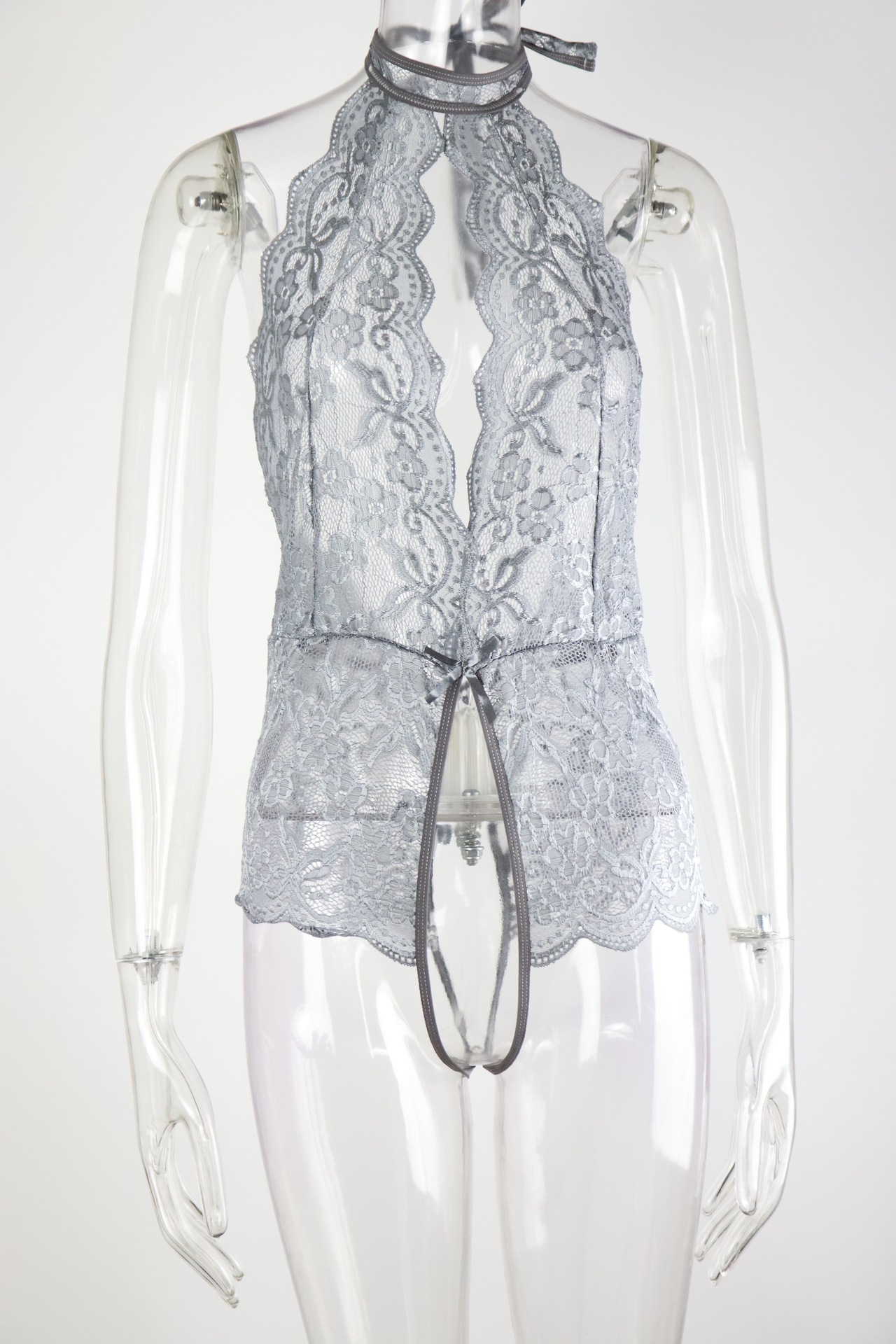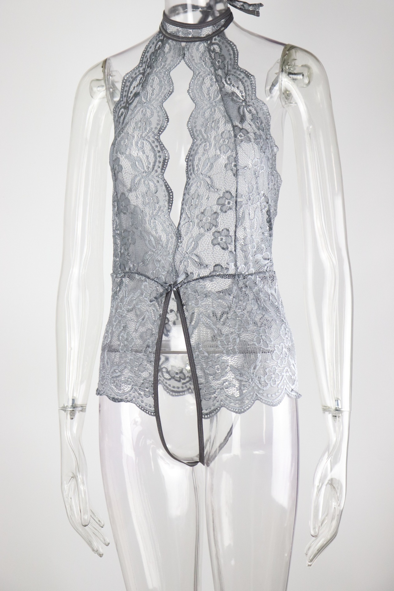 外国貿易の情緒の下着のレースの透かし彫りの誘惑の下着のガーターは首を掛けて背を現して連体の服の女性のsleepwearを現します。