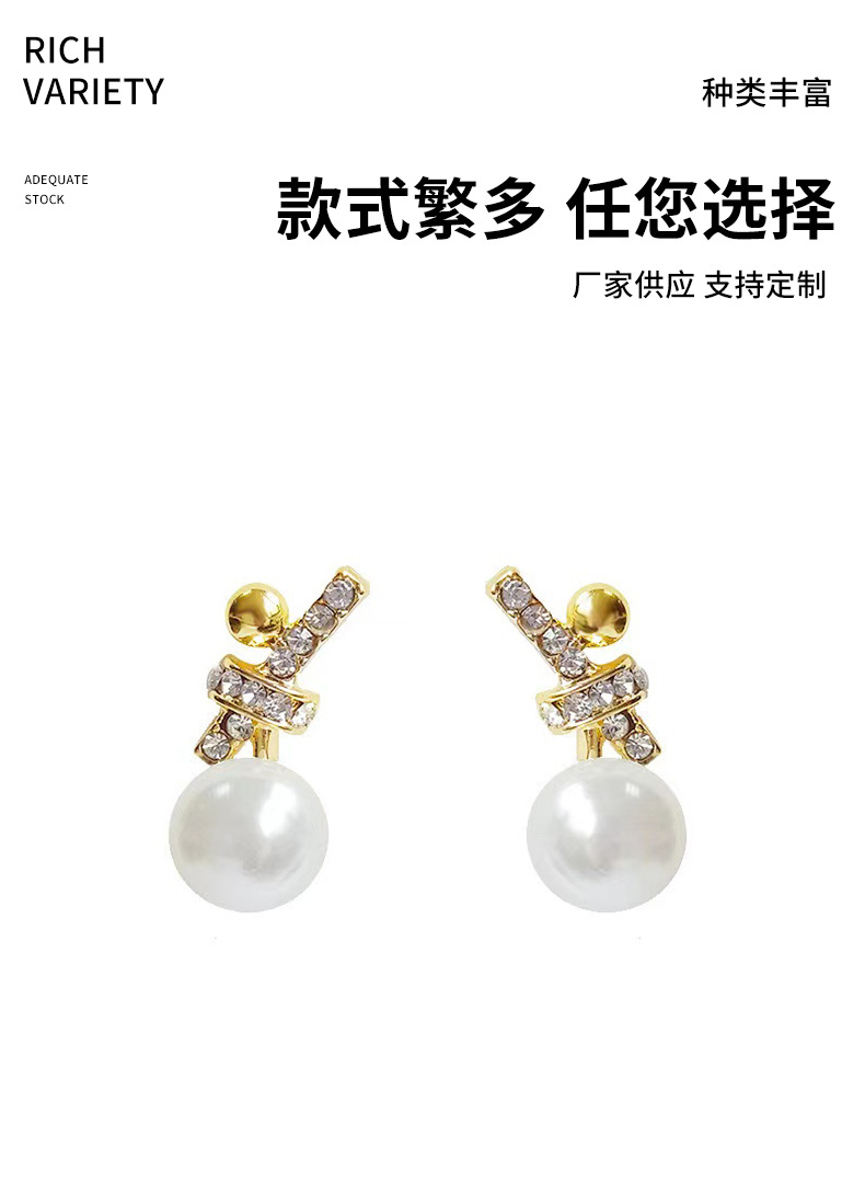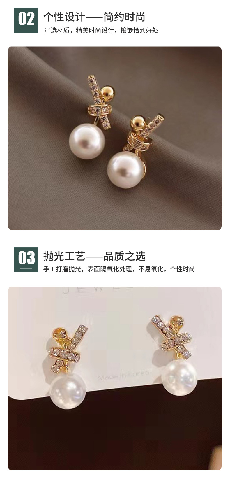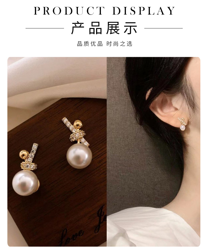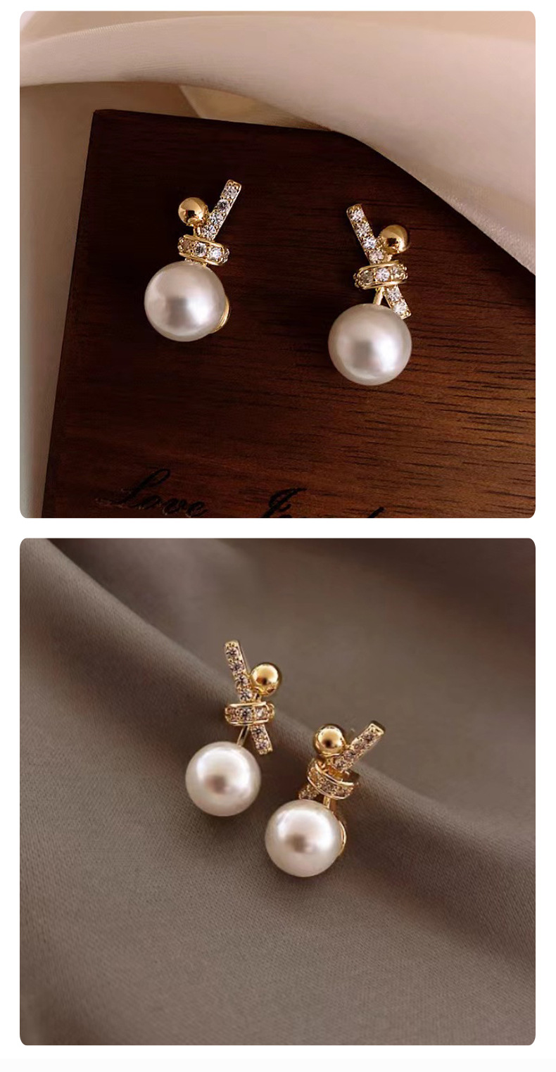 大衆のデザインファッション気質の軽い豪華な真珠のダイヤモンドの耳飾りの女性は小さくて2つの蝶結びの復古の簡単なイヤリングをつけます。