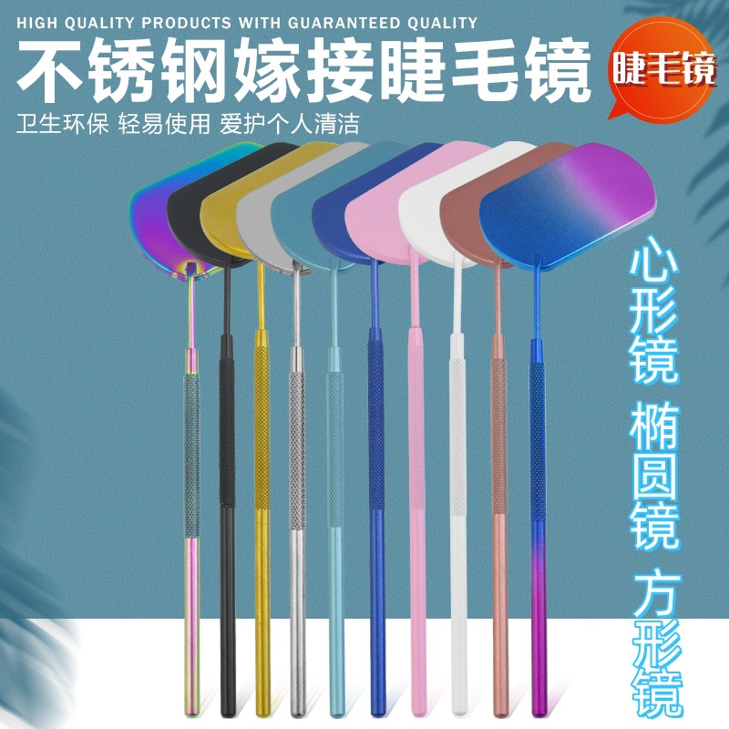 クロスボーダーステンレスまつげ鏡まつげ接ぎ木鏡楕円角型ハート型接ぎ木まつげ手持ち式検査鏡
