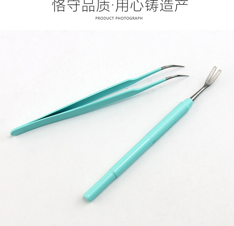 ステンレス水草ピンセット水槽滑り止めペット給餌シリカゲルセット延長ストレートヘッド曲げトリミングセットツール