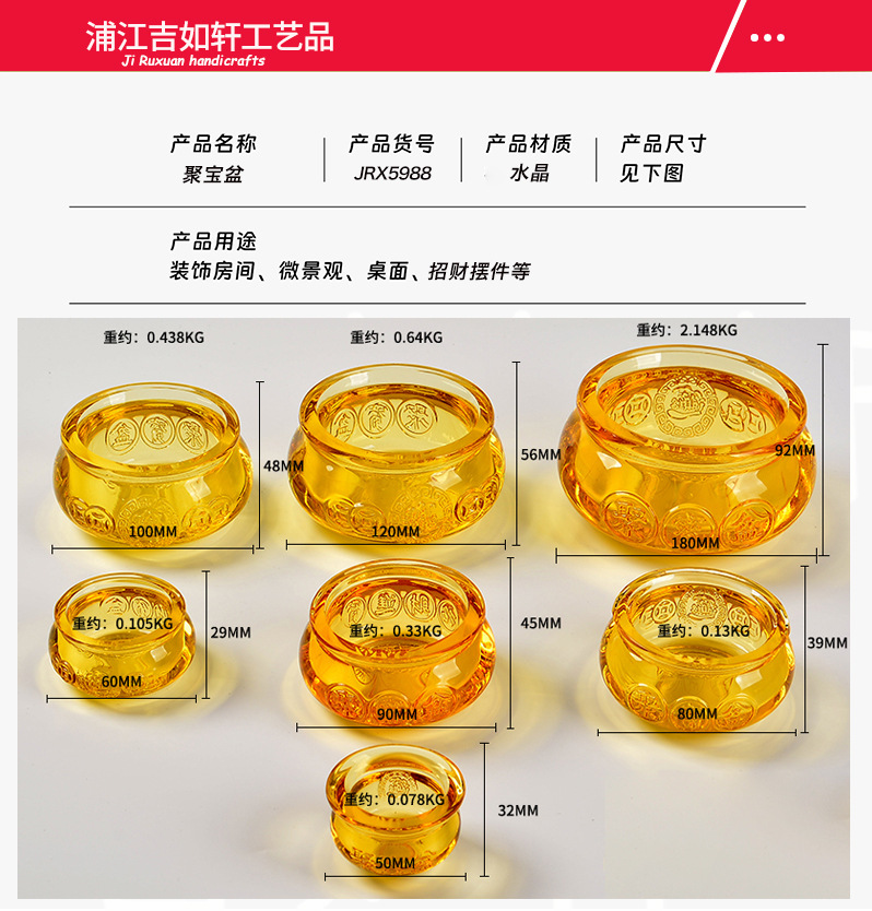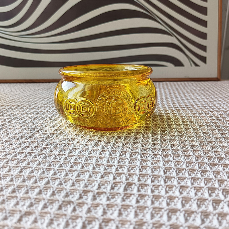 水晶聚宝盆置物黄水晶元宝工芸品瑠璃聚宝盆置物家庭装飾開業プレゼント