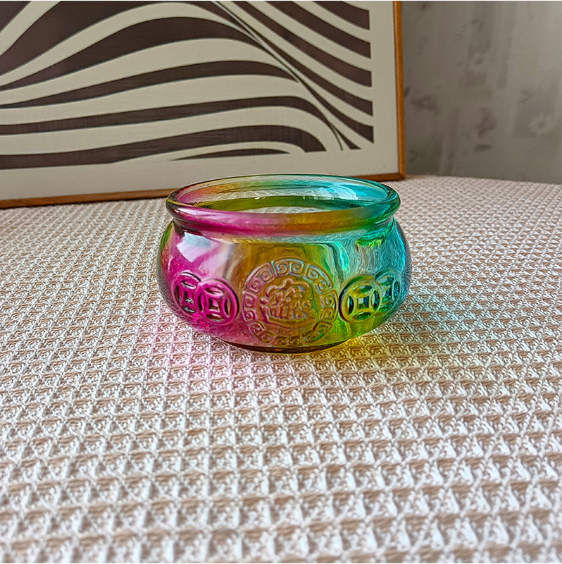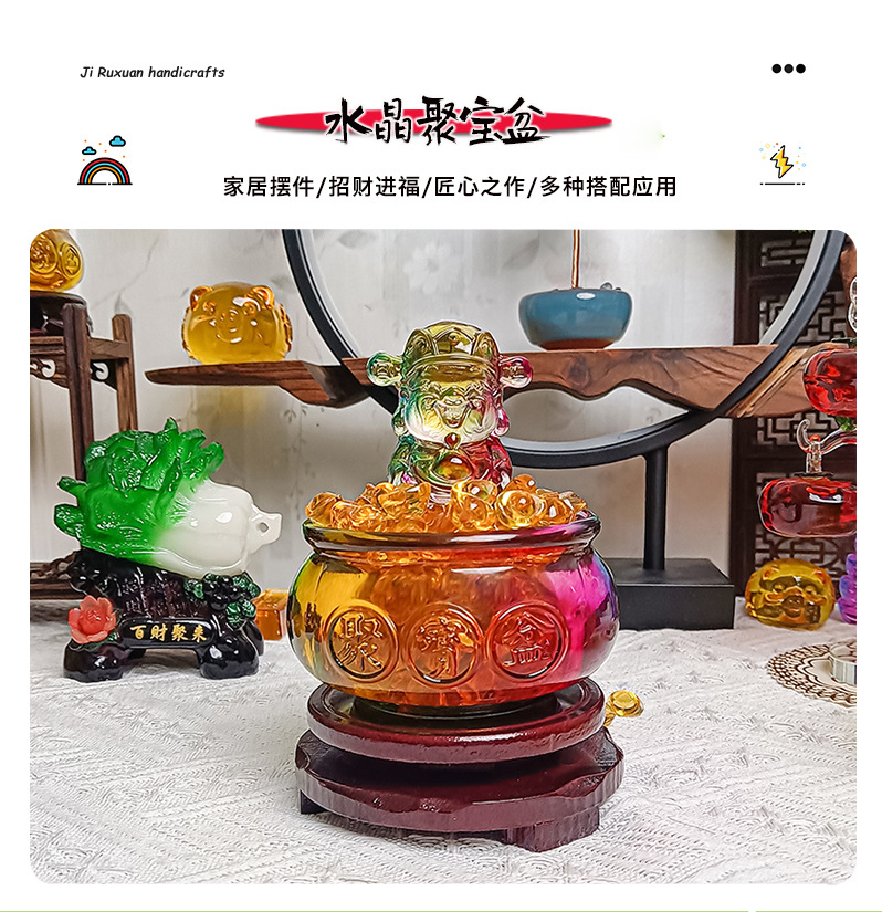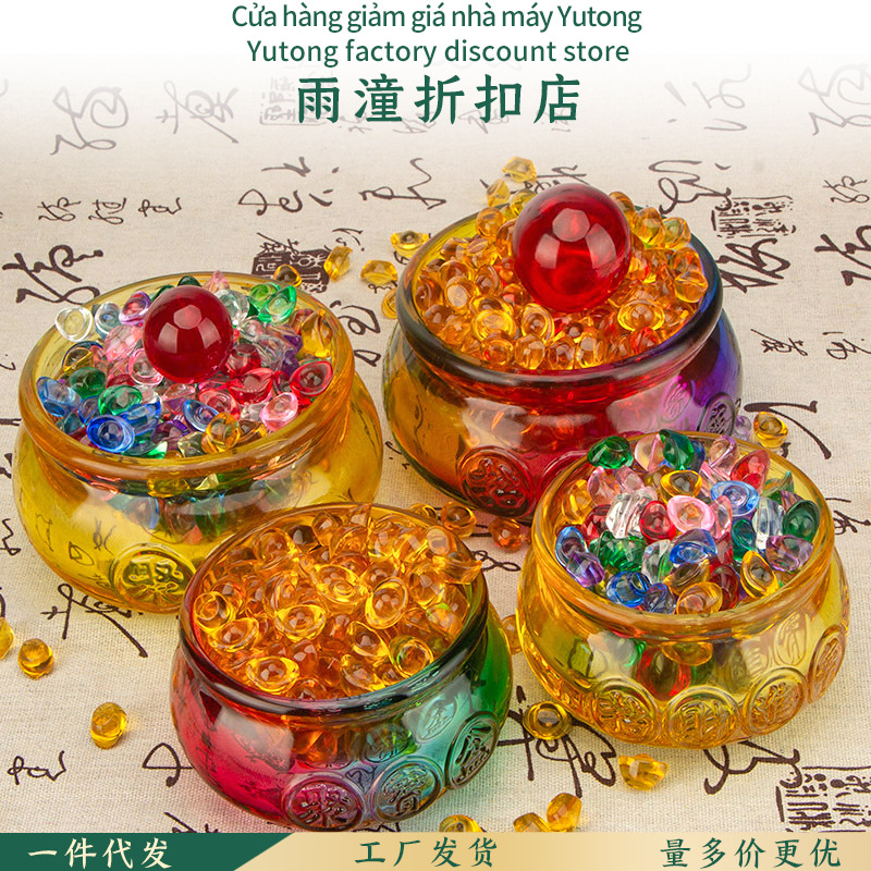 琉璃彩色聚宝盆装满小元宝摆件招财进宝礼品家居装饰黄水晶聚宝盆