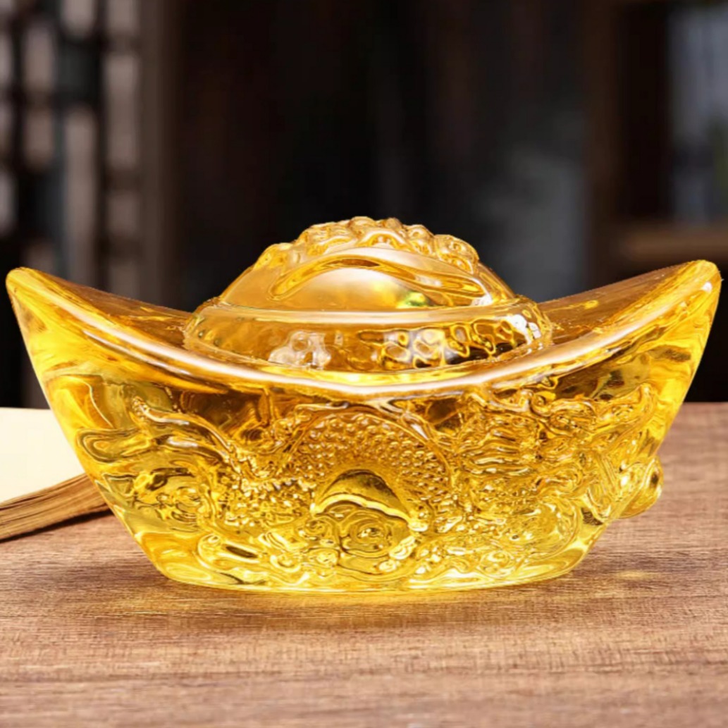 金塊がいっぱいのガラス製宝箱、中国風の家の装飾、開運飾り、開店祝い、イエロークリスタル宝箱