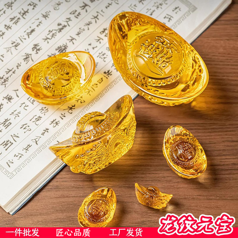 新商品の水晶元宝双龍戯珠元宝龍紋瑠璃元宝進宝家居装飾小置物卸売り