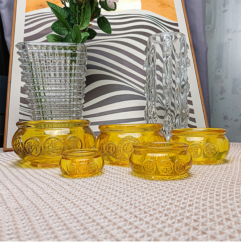 仏教ランプ用の八つの縁起の良いバター、つや消し光沢のあるガラスランプベース、仏前用品、ギフト、シトリン蓮ランプベース