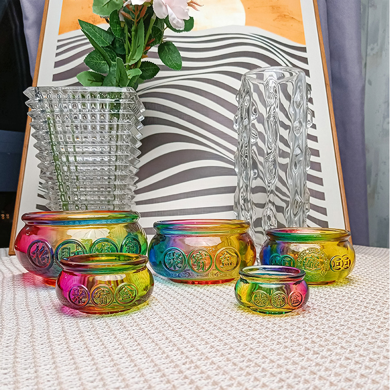 釉薬ガラスの水差し、聖水カップ、置物、家庭用仏前供物、七供八水、水晶カット水差し