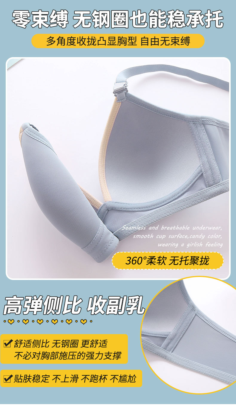 レディース大きいサイズの薄いタイプのスチールリングのない下着の調整型が集まって胸が垂れ下がるのを防ぎます。