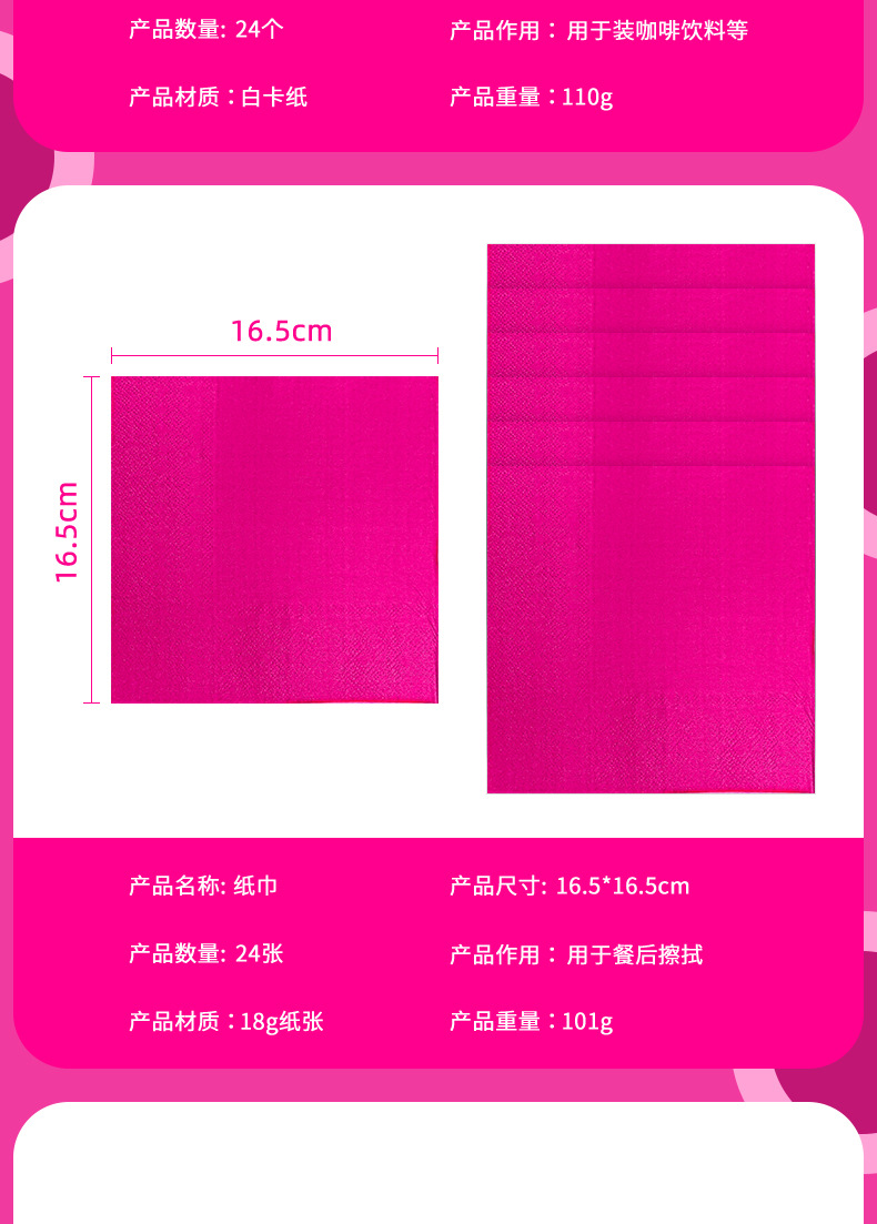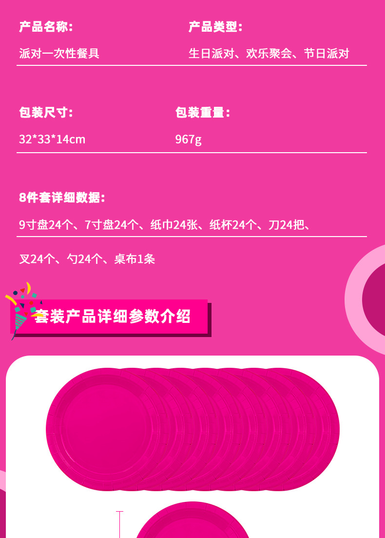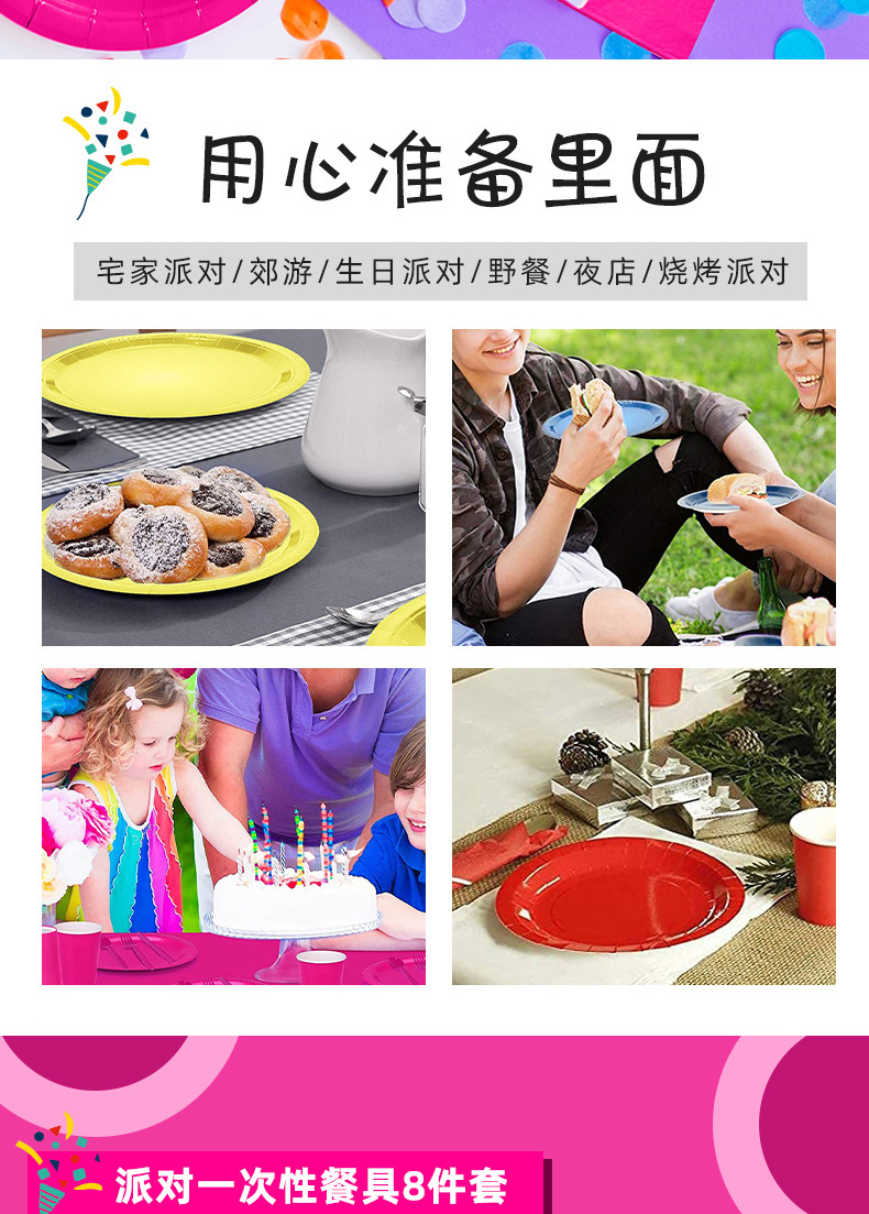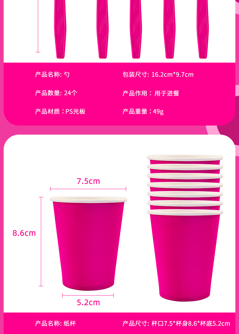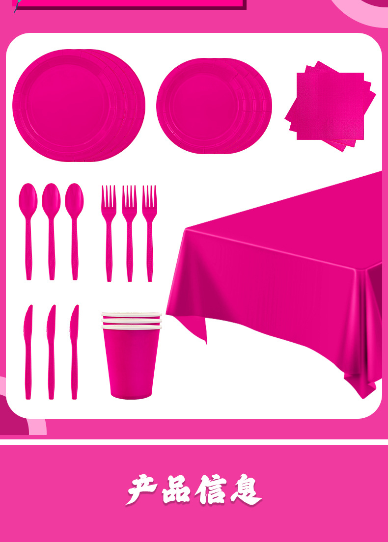新商品現物純色パーティー祝日セット薄ピンク紙コップテーブルクロス使い捨てパーティー装飾配置用品