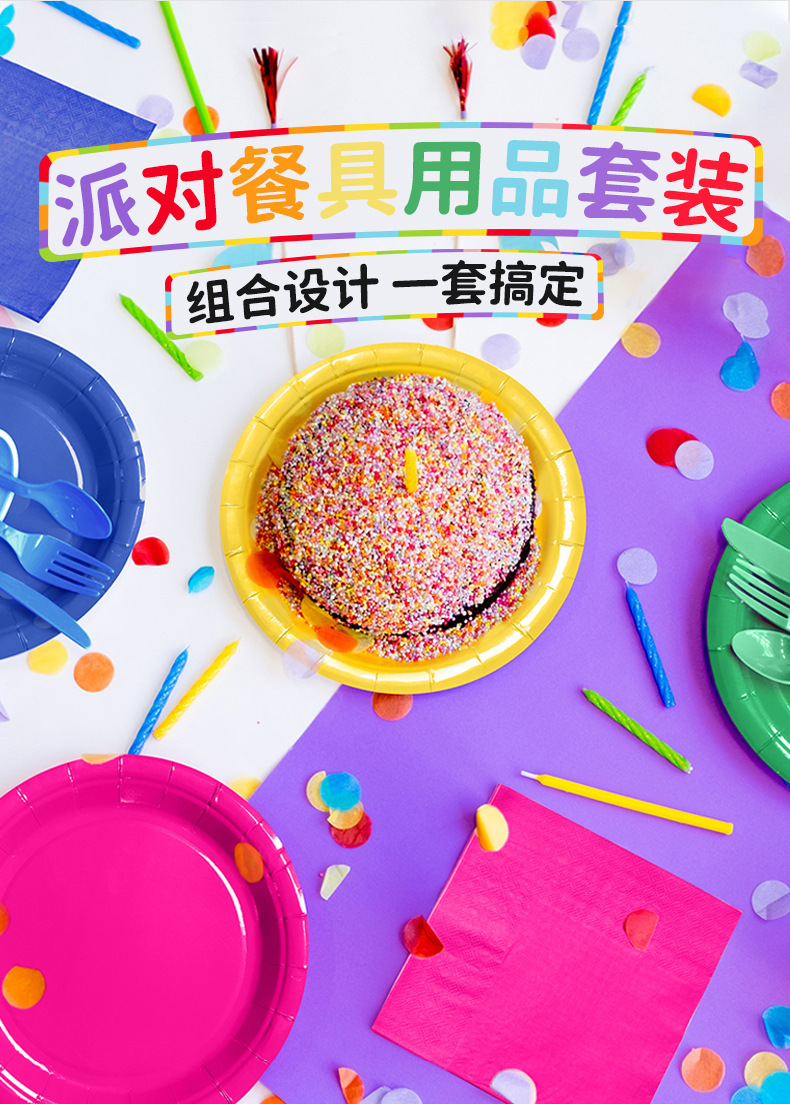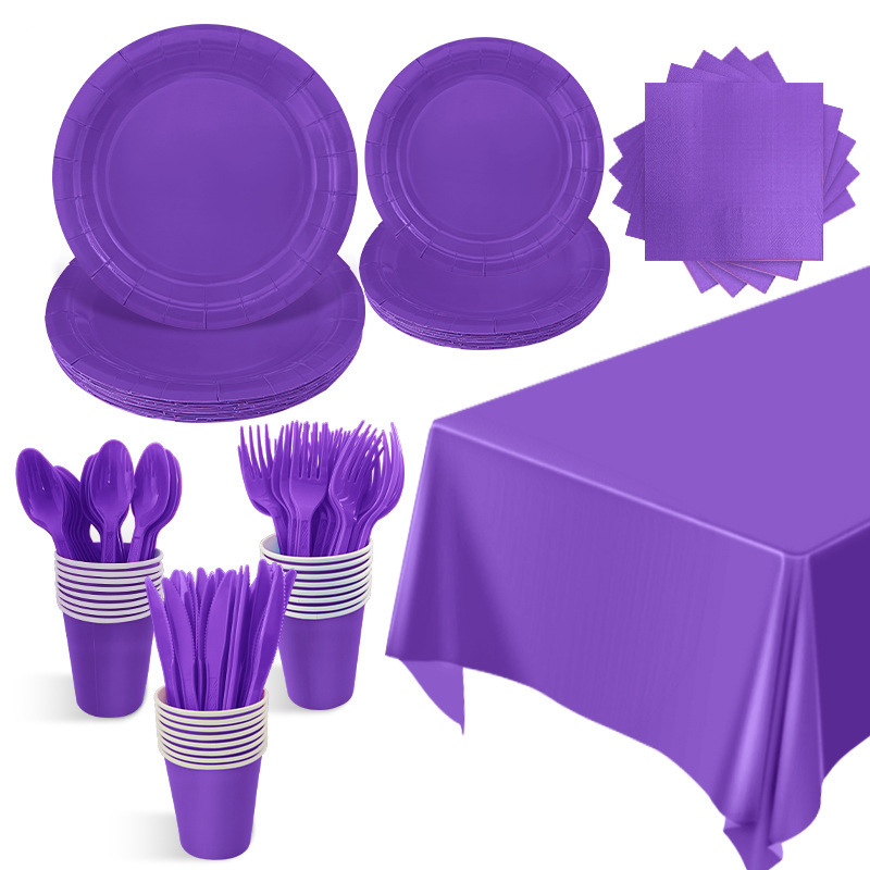 国境を越えたスポット直販純粋な紫色のテーマ紙皿セット祝日パーティー使い捨て食器装飾配置用品