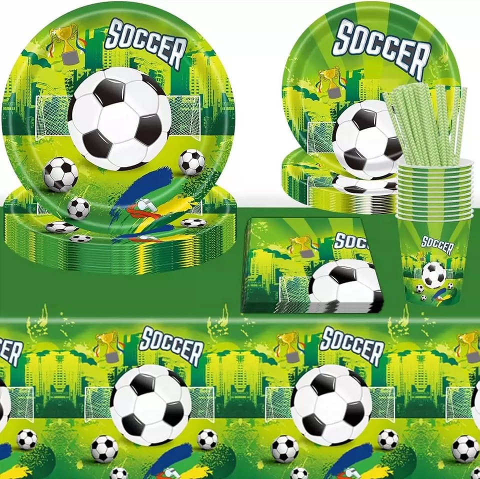 国境を越えた現物ワールドカップサッカーのテーマ紙皿セット使い捨て紙コップの旗パーティーの祝日の配置用品