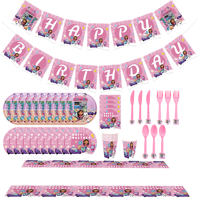 国境を越えた新しいスポットピンクの蓋比人形屋テーマ紙皿セット横断幕テーブルクロス風船パーティー装飾カバー