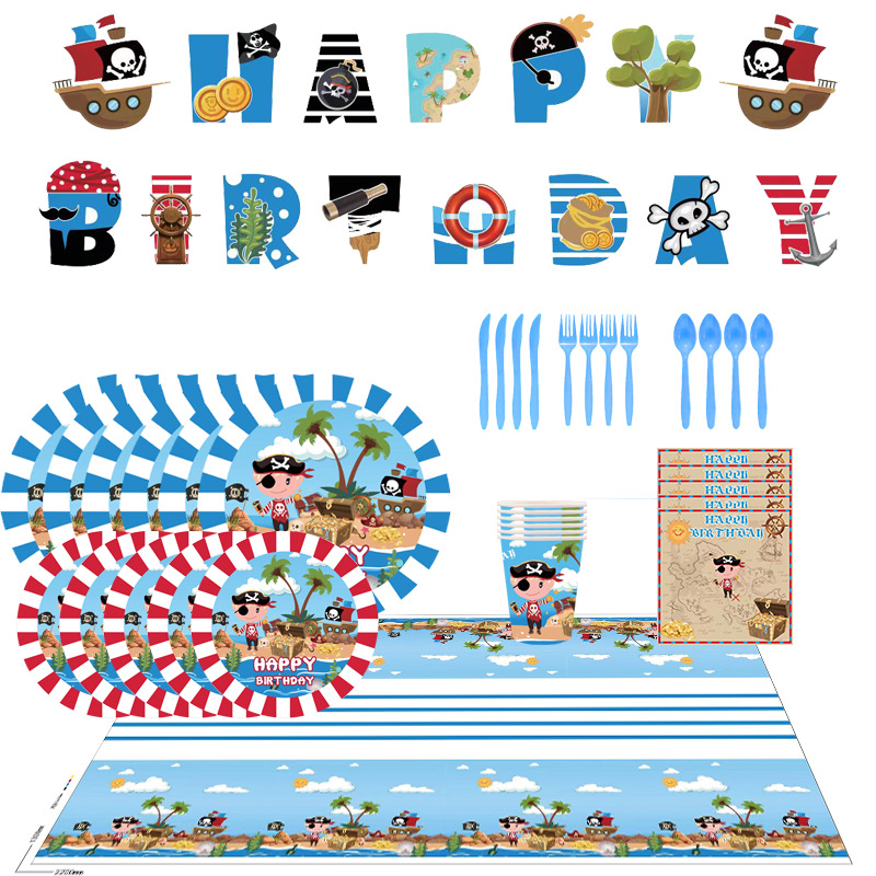 国境を越えたスポットブルー海賊テーマ紙皿セットティッシュ紙コップテーブルクロスパーティー使い捨て用品