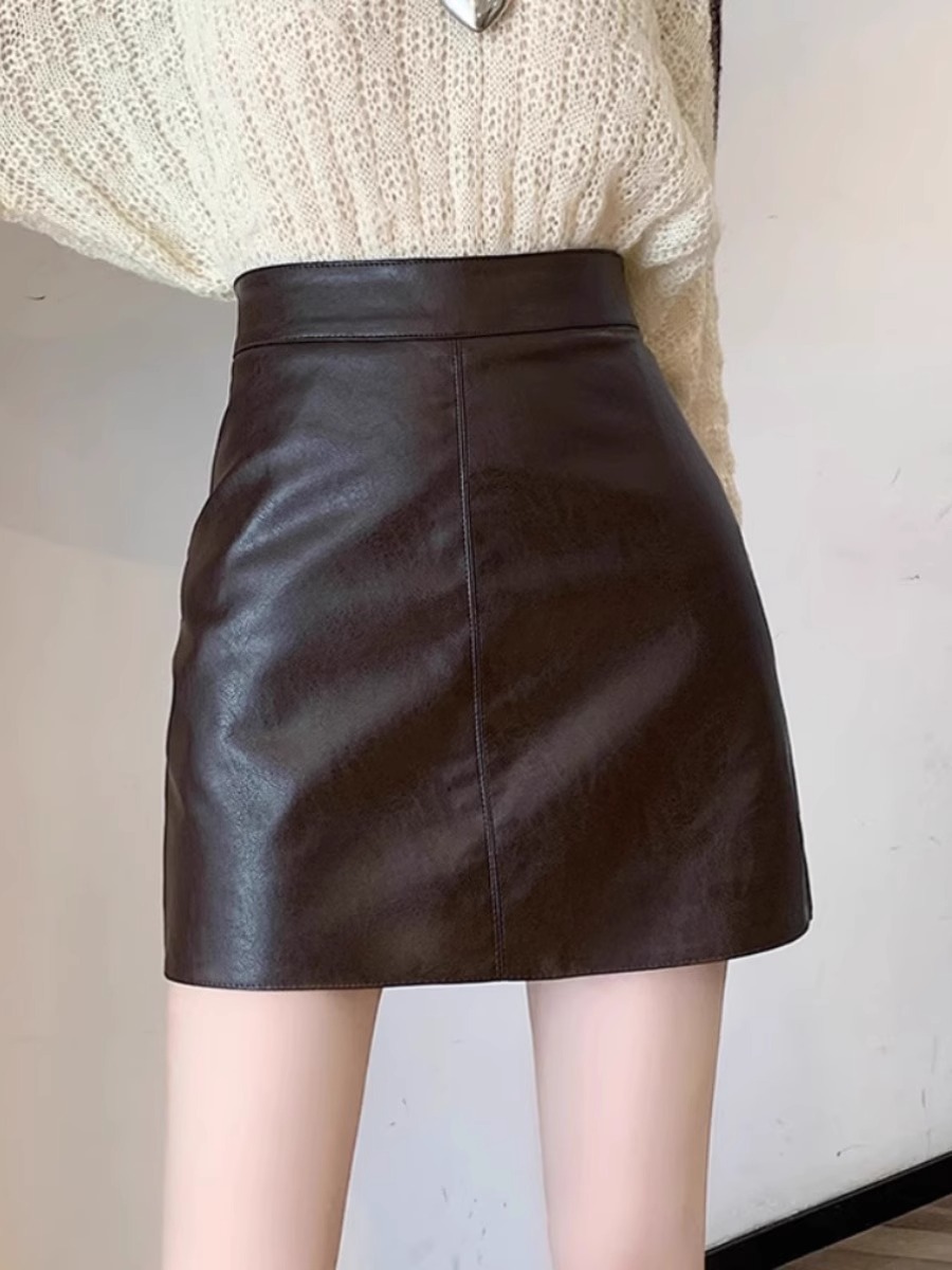 秋冬の新型ハイウエストA字はやせています。ハイウエストのスカートpu皮のスカートのファッションのショートスカートの外にはシンプルなコンビネーションのスカートを着ています。