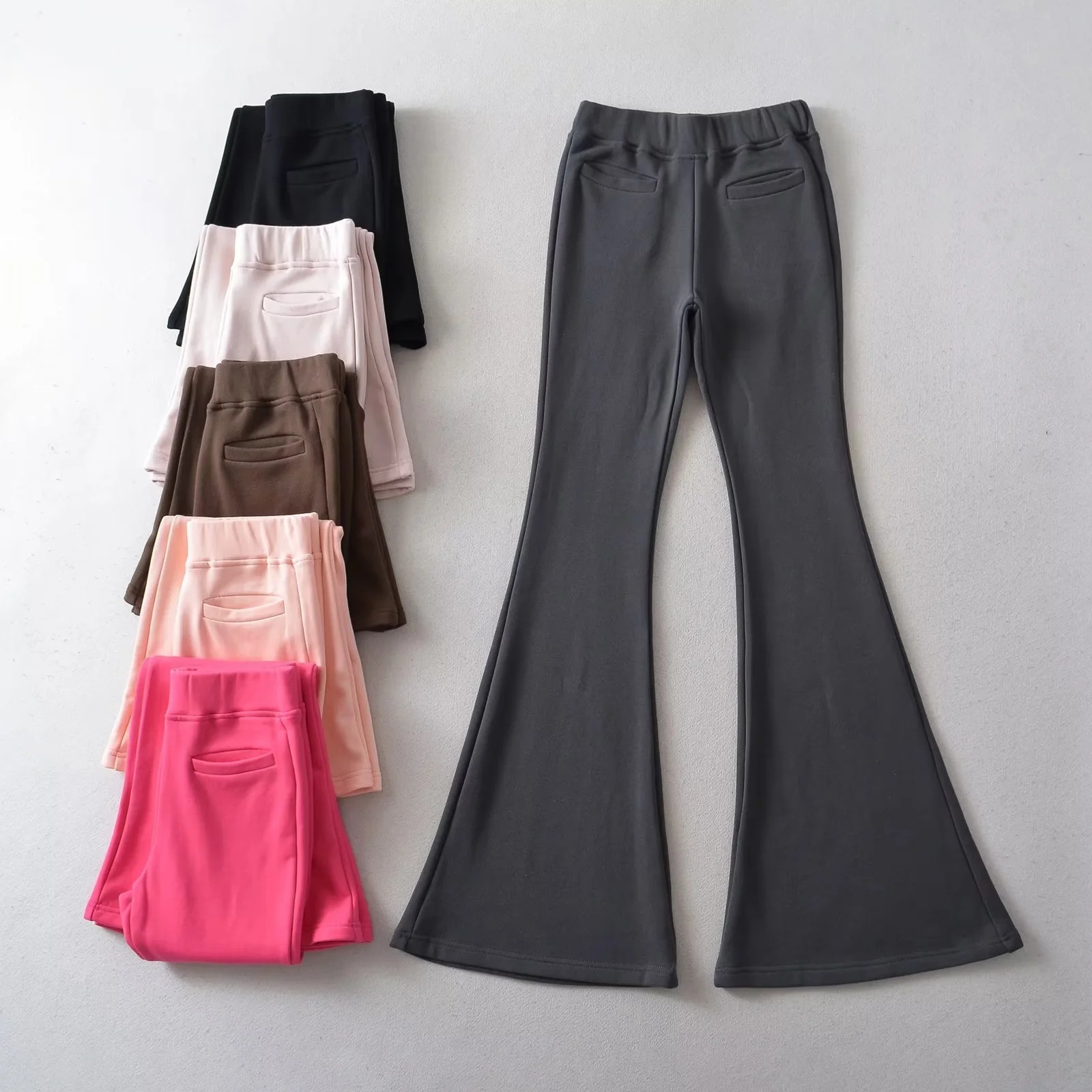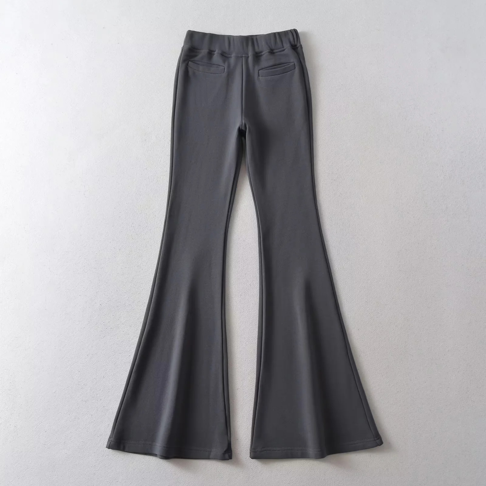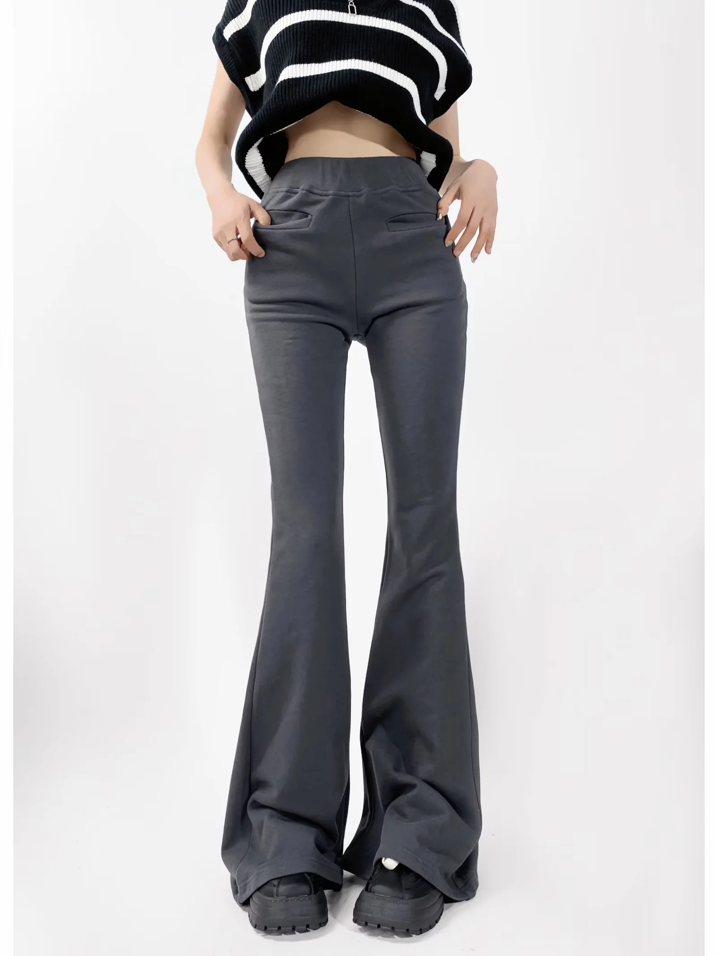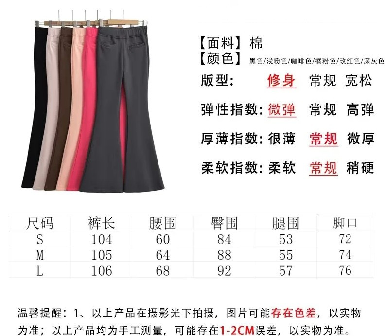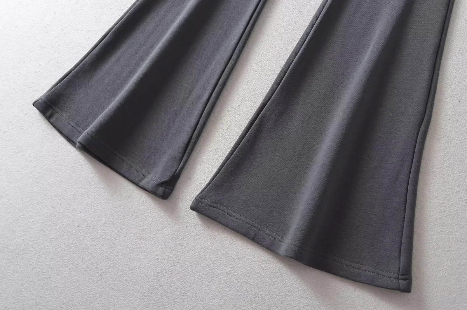 2023秋の新型ギャルの中で低い腰の修身は尻の小さいラッパのズボンの女性の純色の百合のカジュアルなモップのズボンのファッションを包みます。