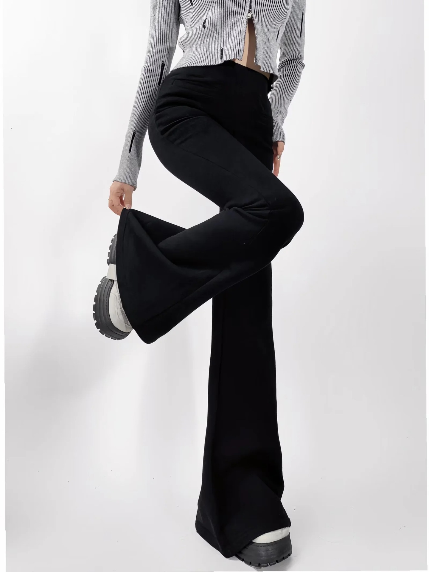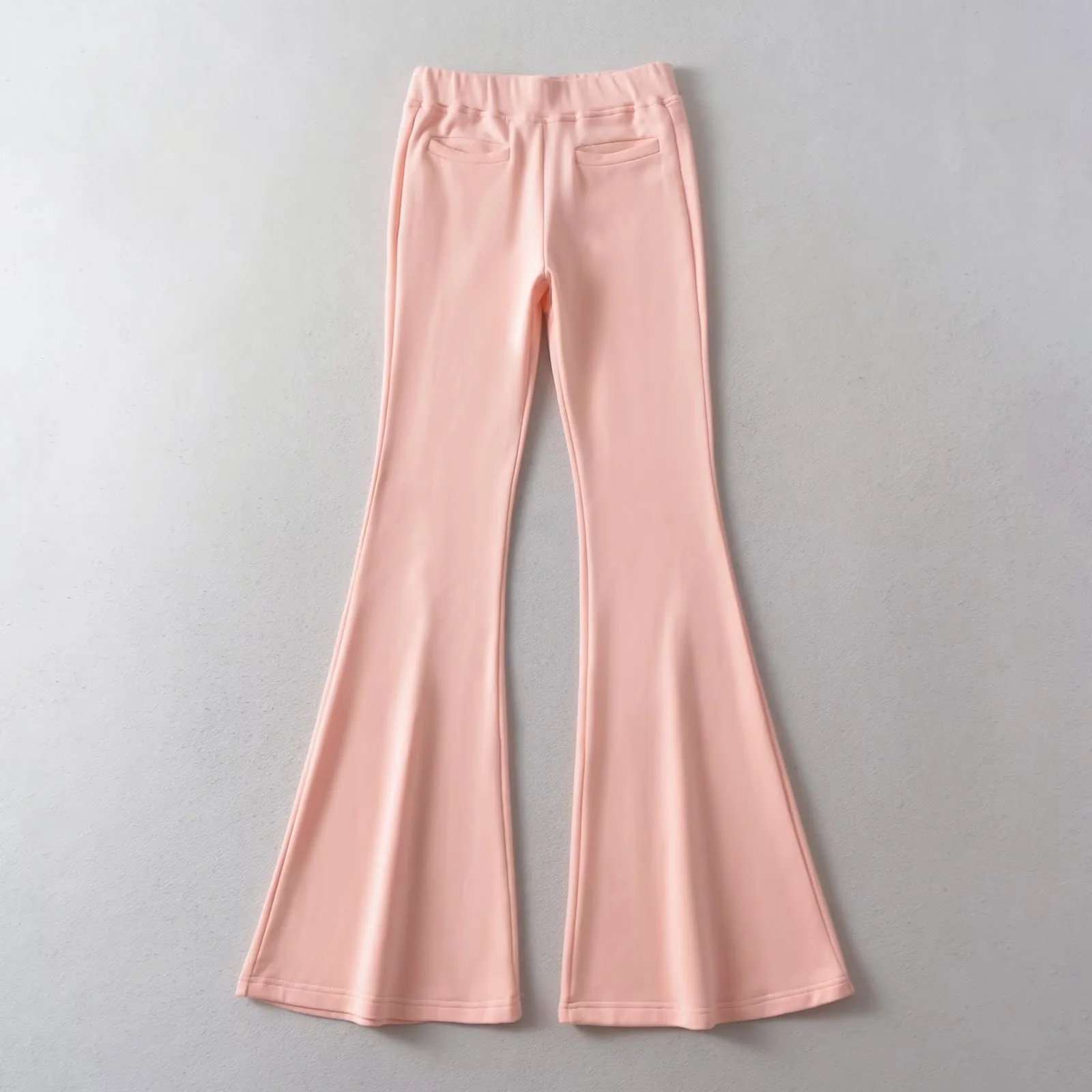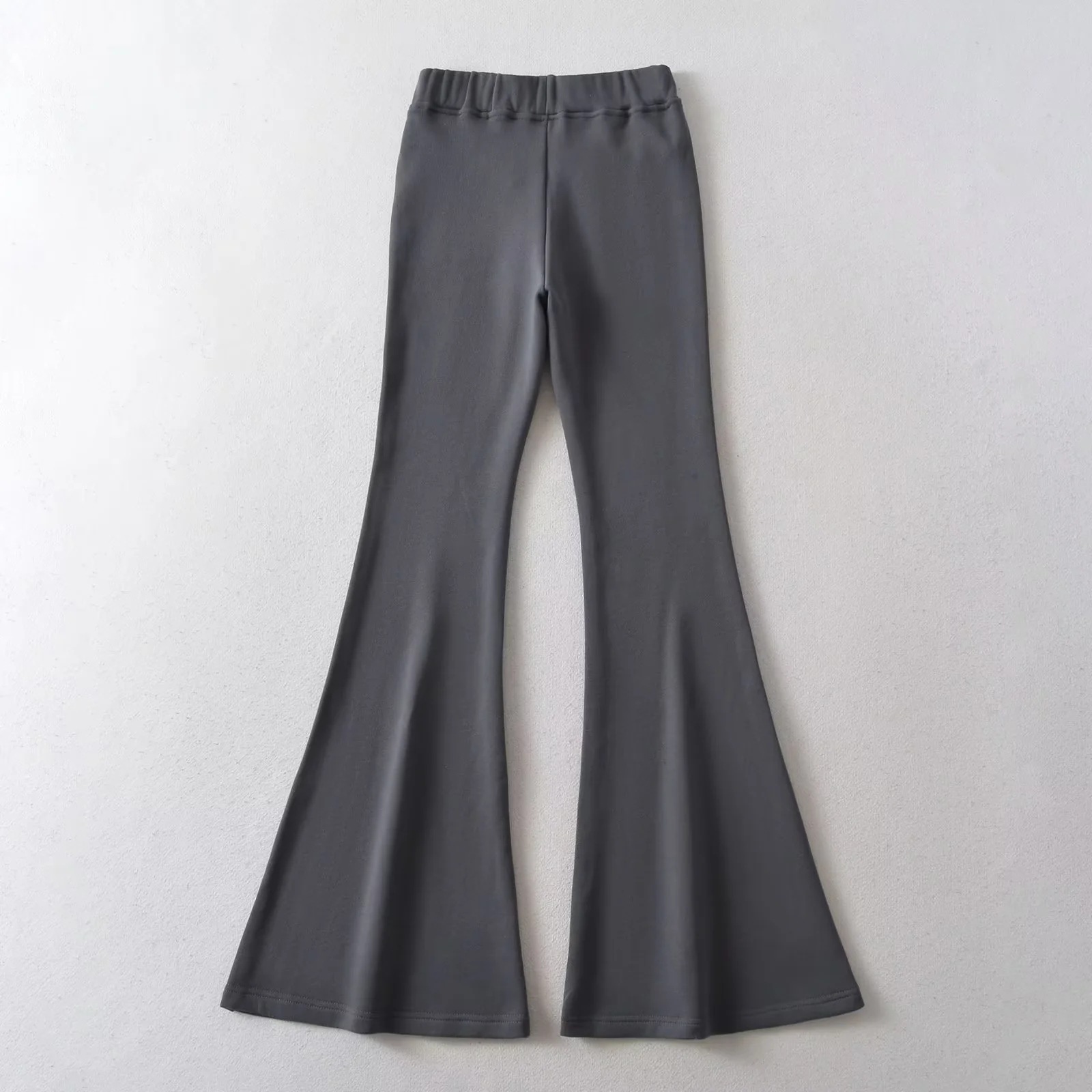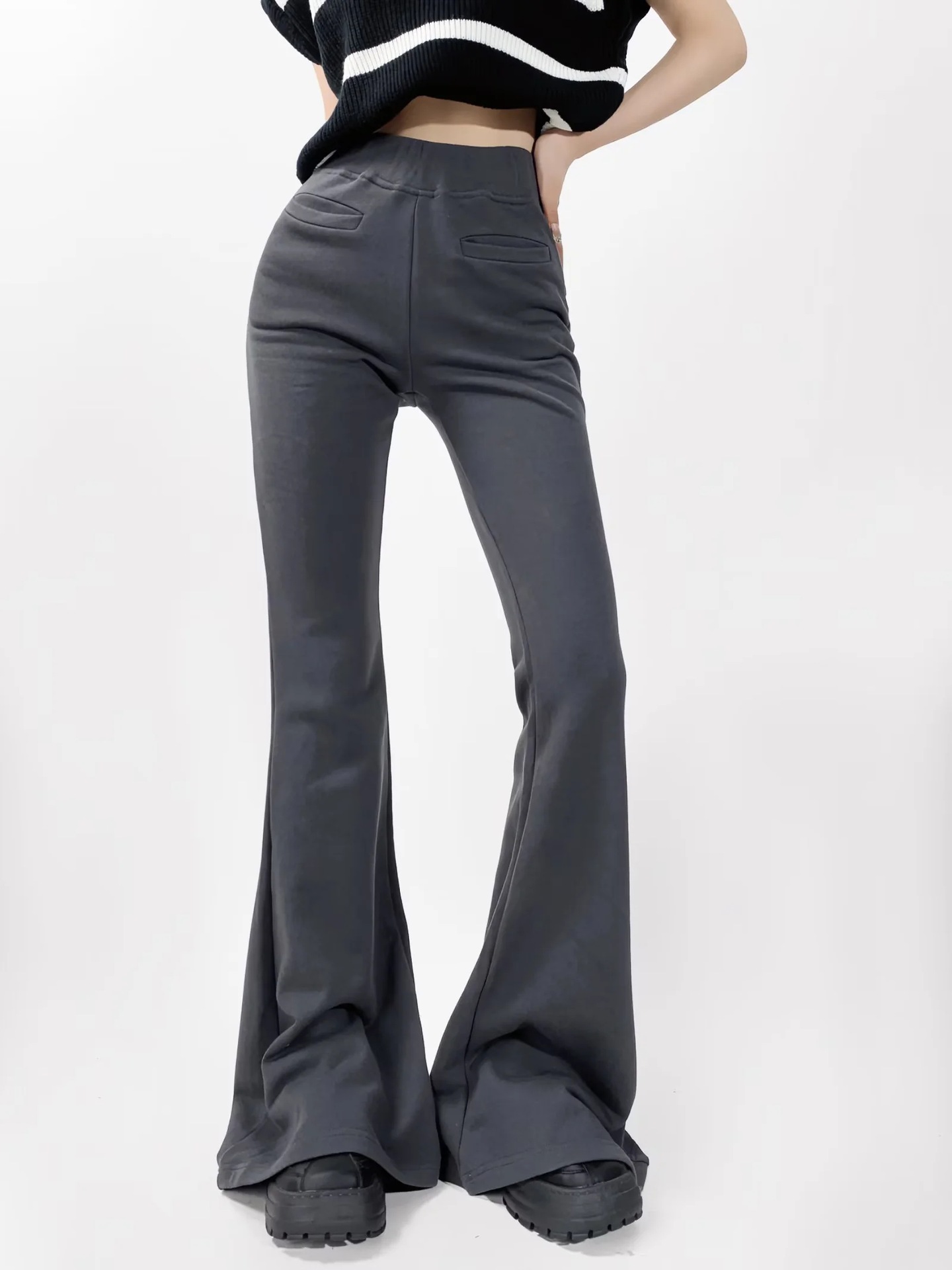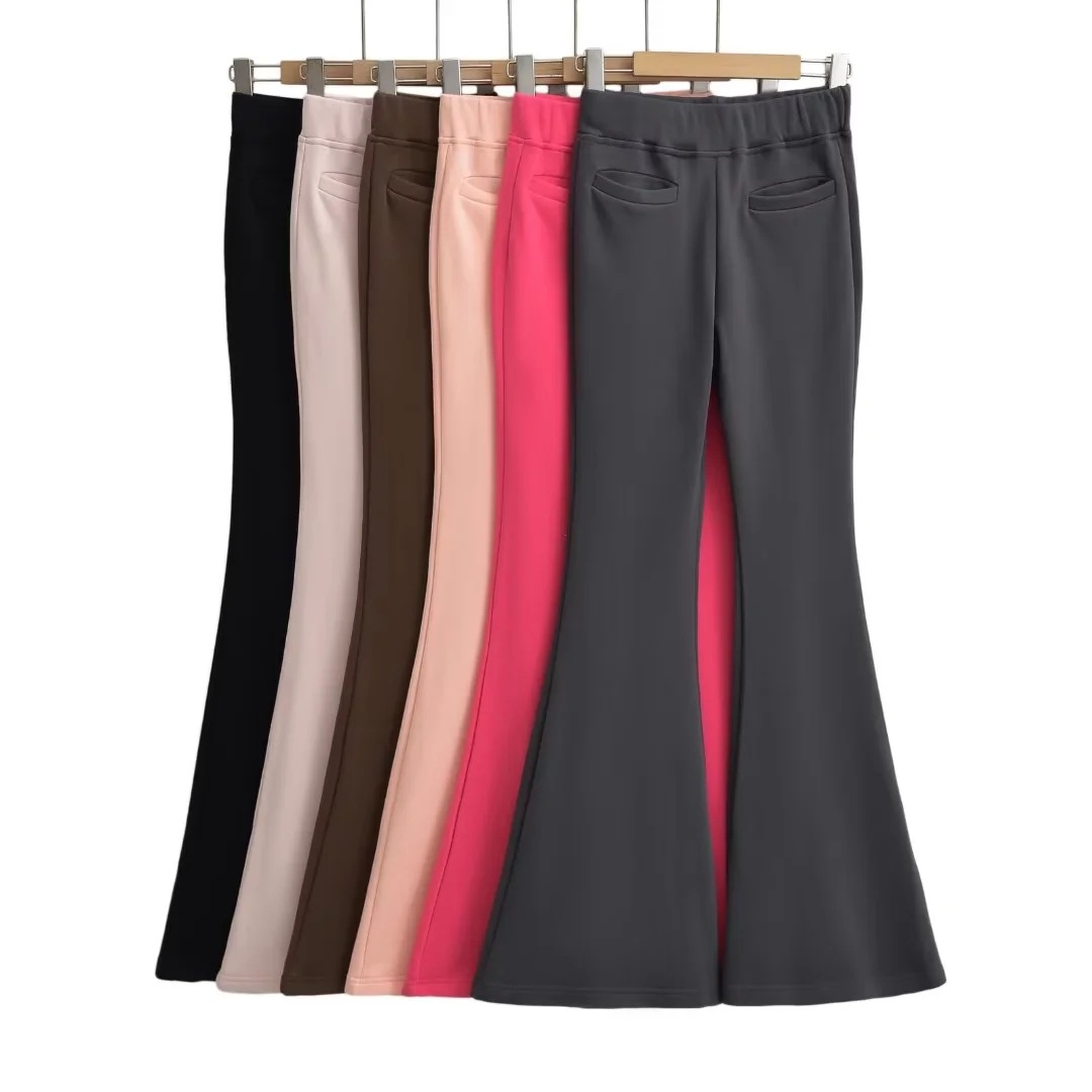 2023秋の新型ギャルの中で低い腰の修身は尻の小さいラッパのズボンの女性の純色の百合のカジュアルなモップのズボンのファッションを包みます。