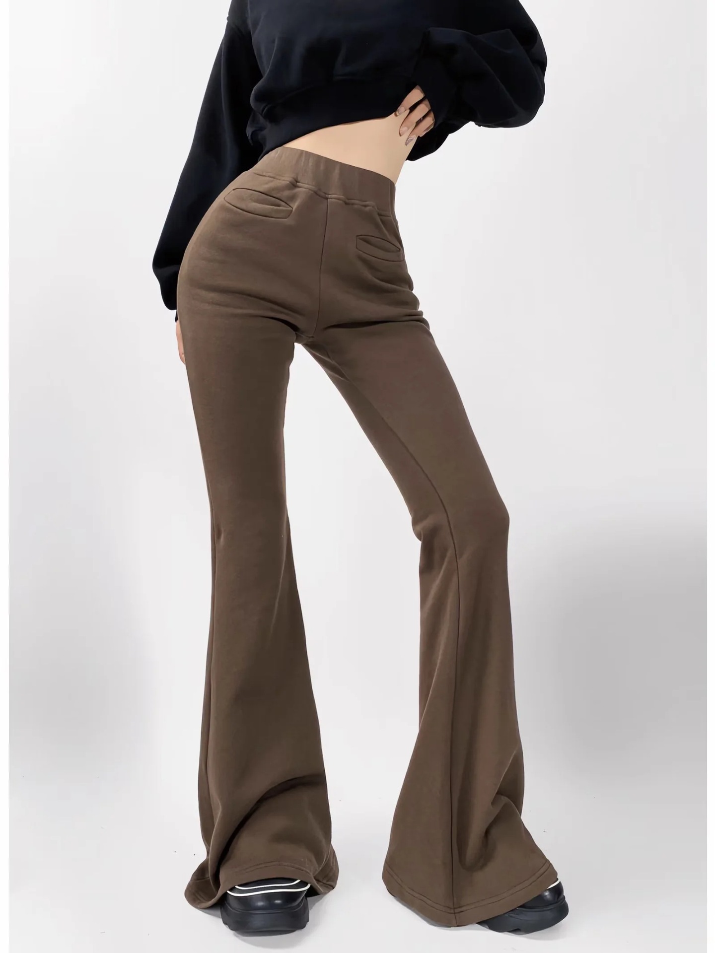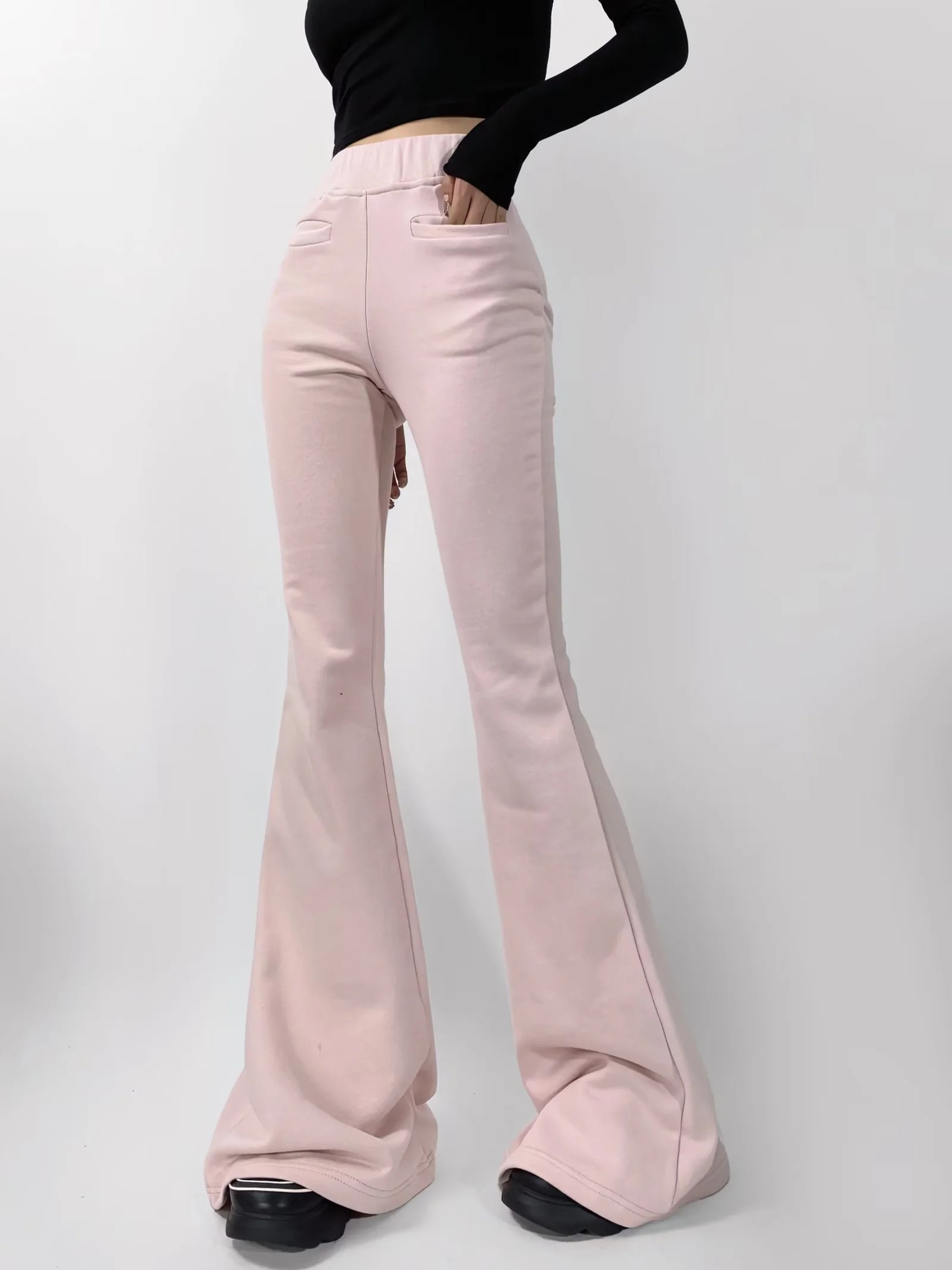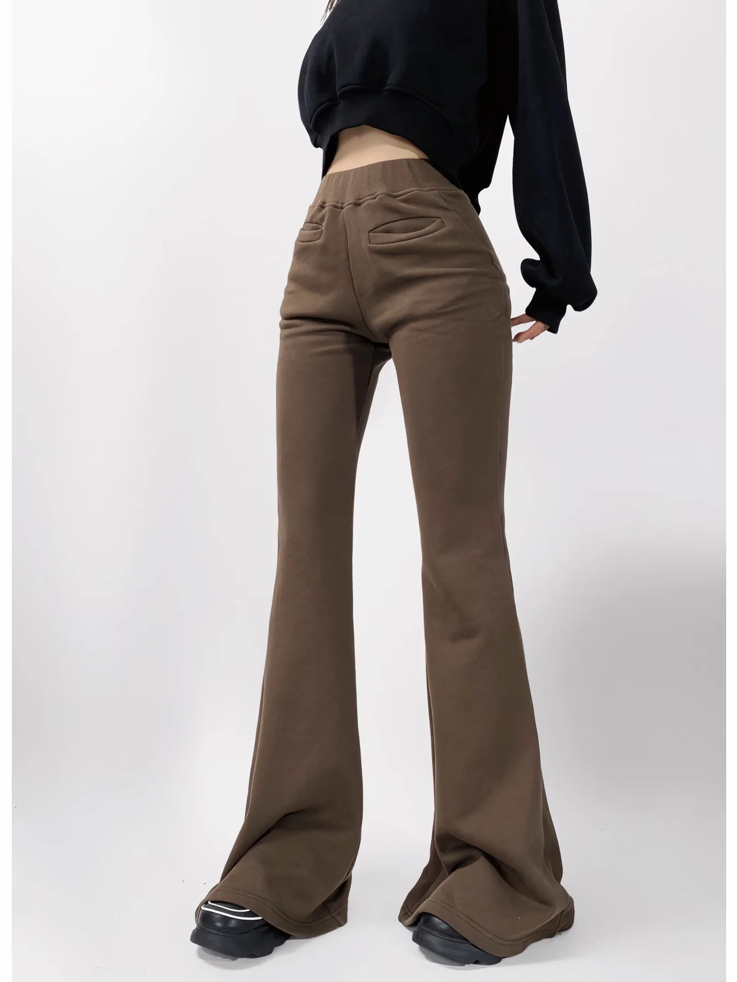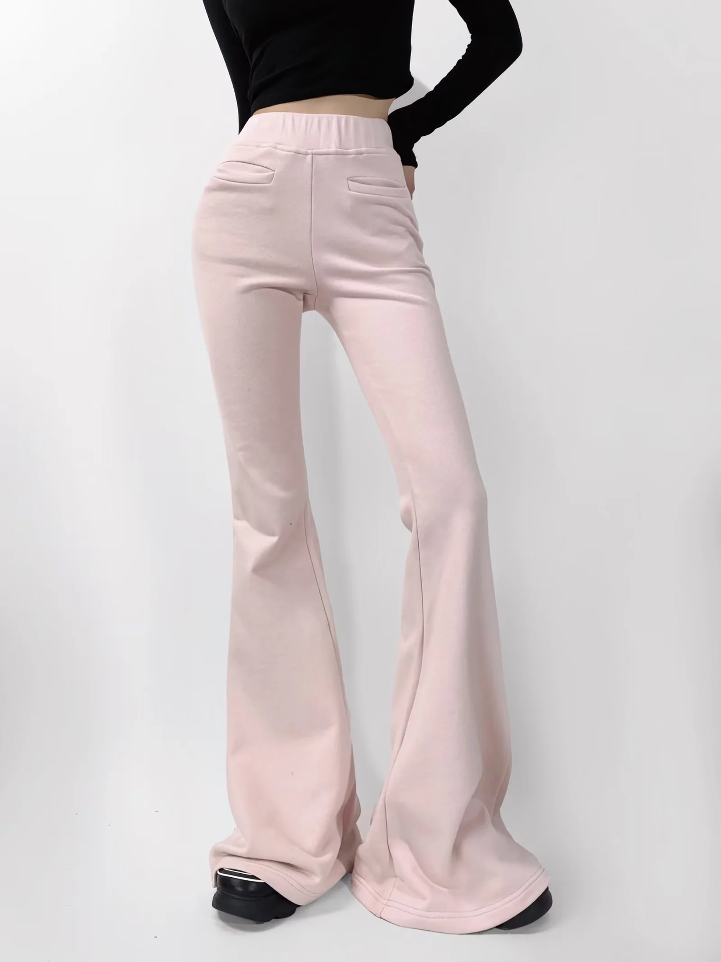 2023秋の新型ギャルの中で低い腰の修身は尻の小さいラッパのズボンの女性の純色の百合のカジュアルなモップのズボンのファッションを包みます。