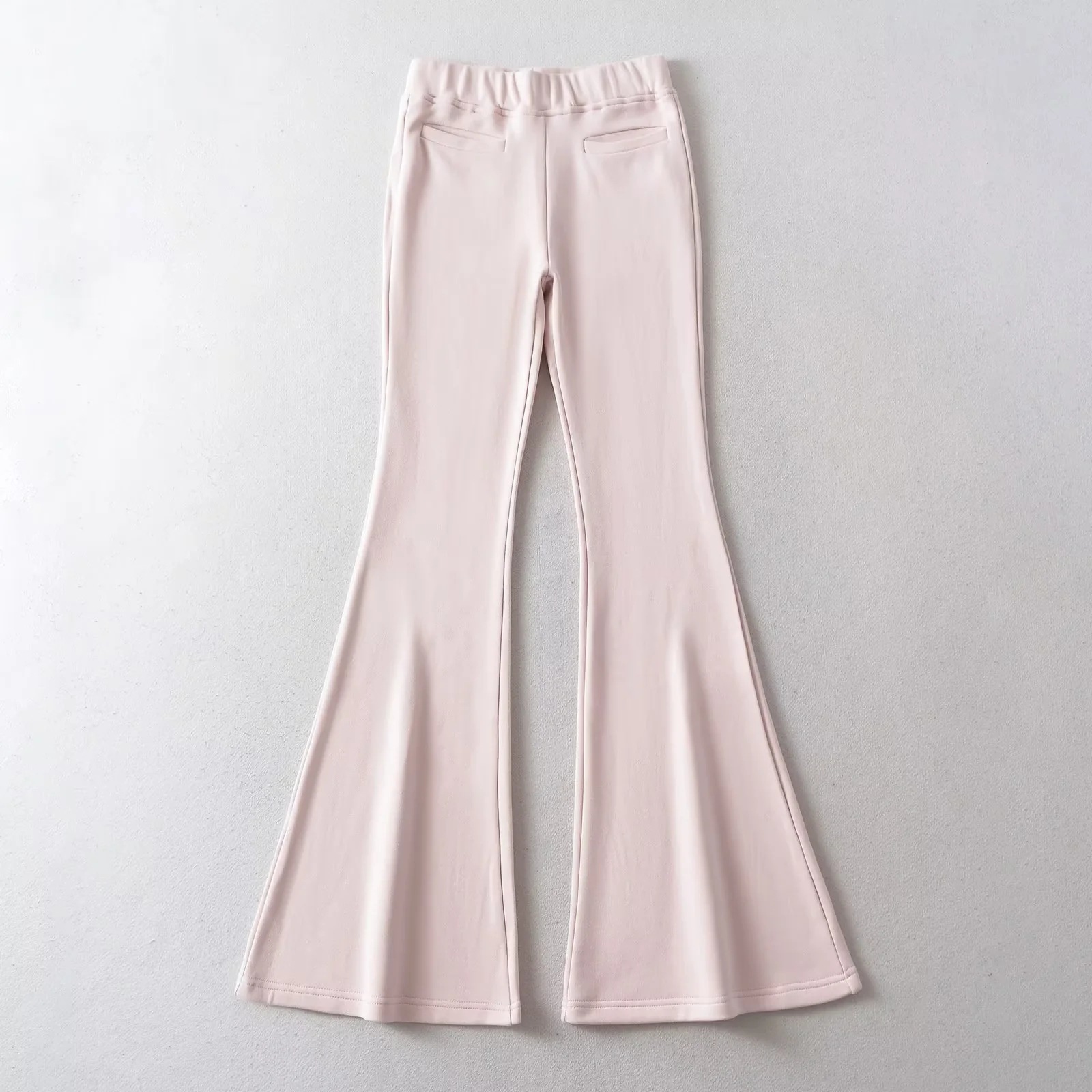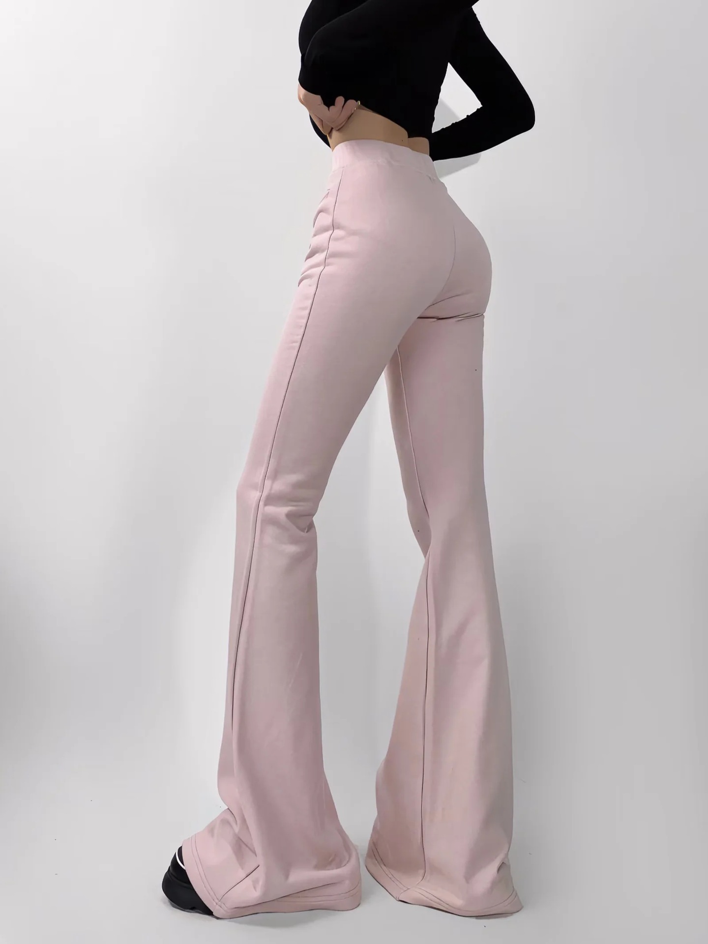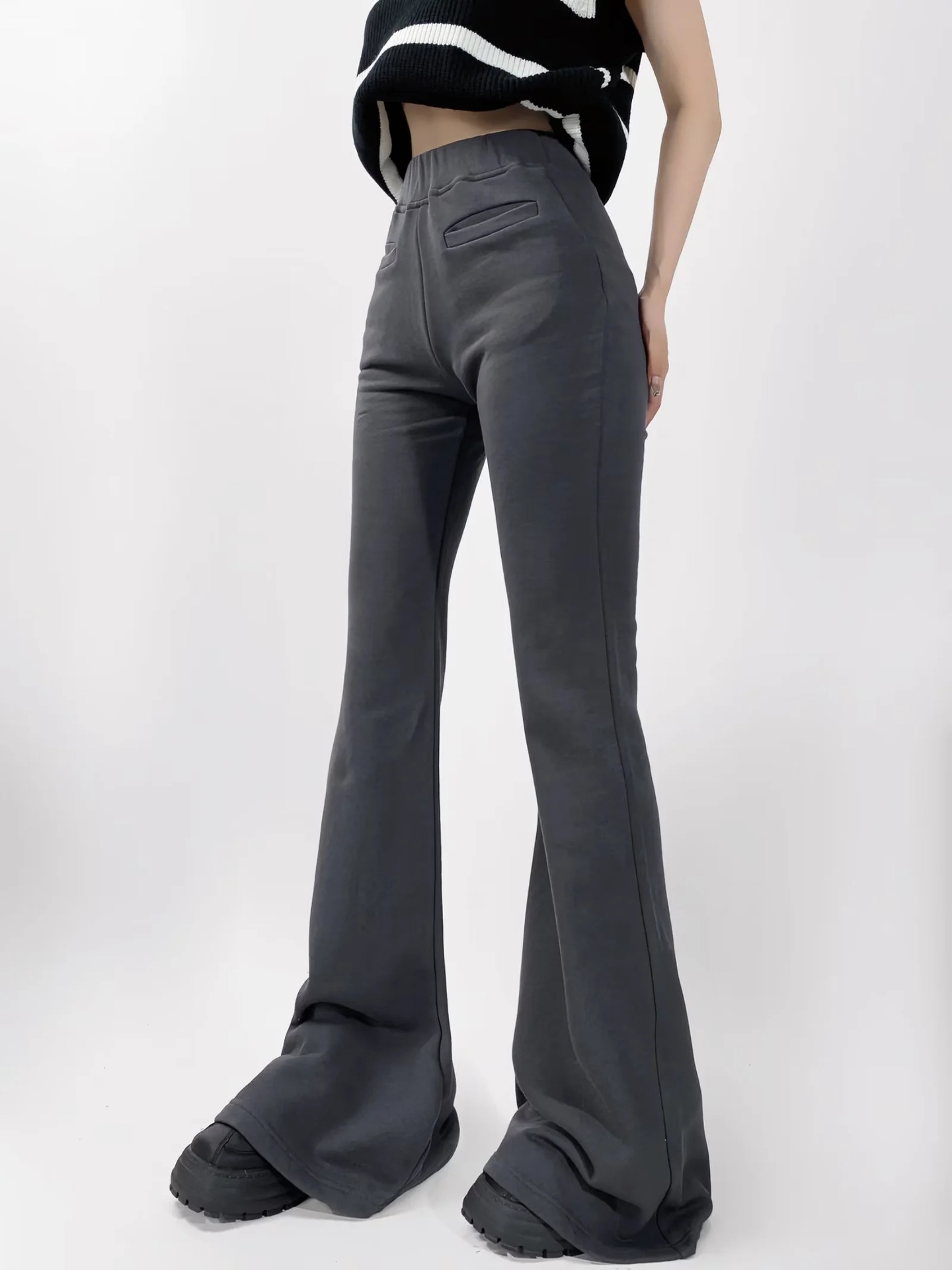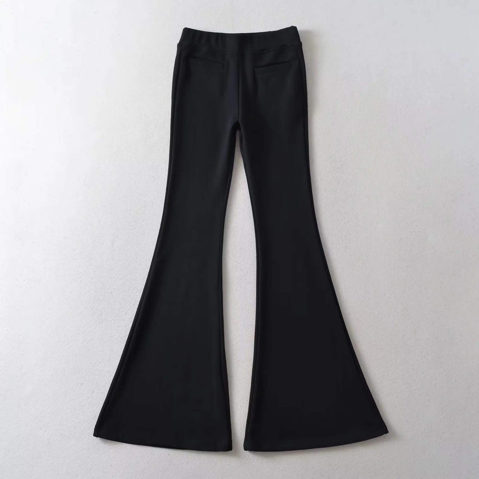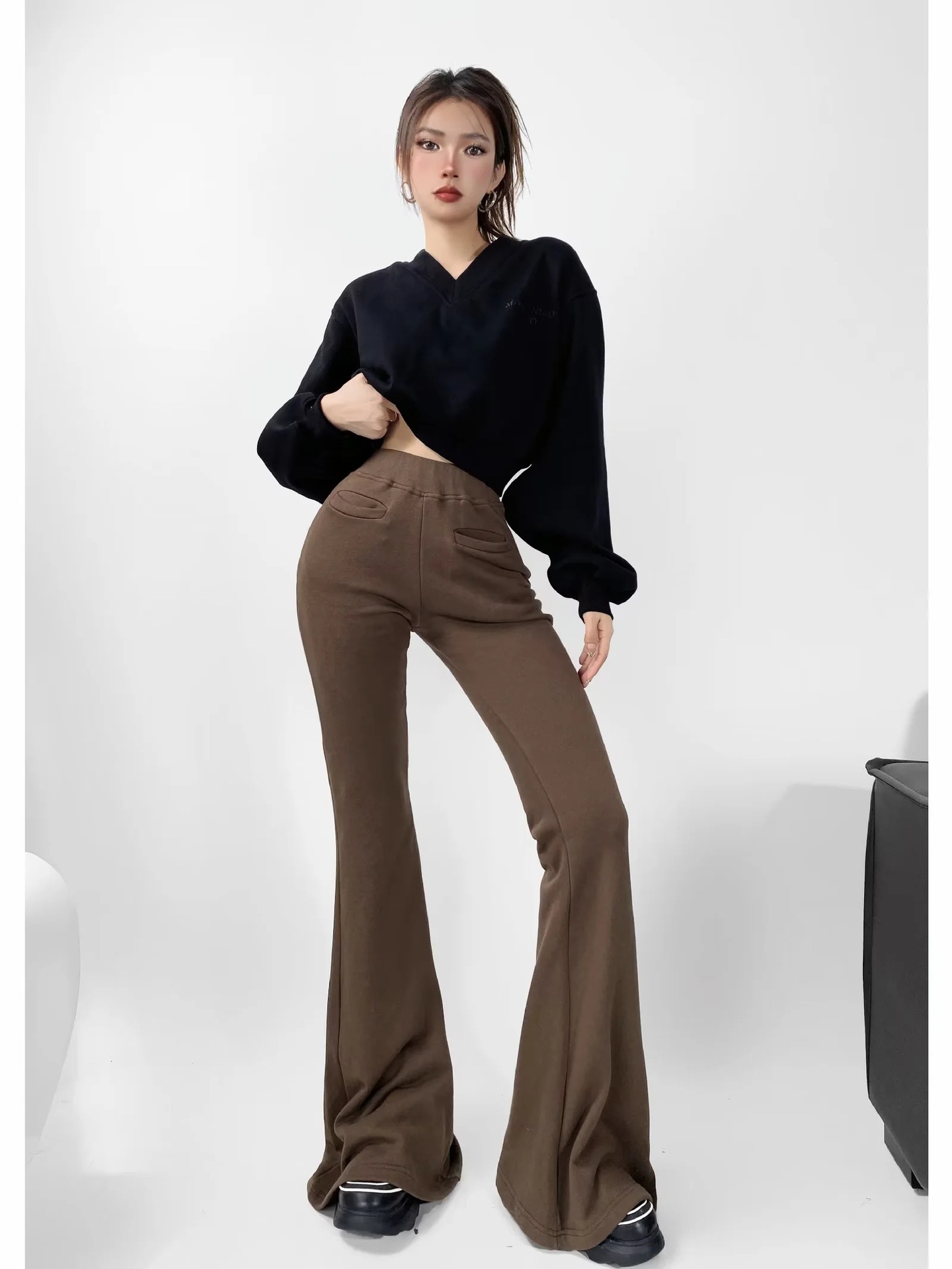2023秋の新型ギャルの中で低い腰の修身は尻の小さいラッパのズボンの女性の純色の百合のカジュアルなモップのズボンのファッションを包みます。