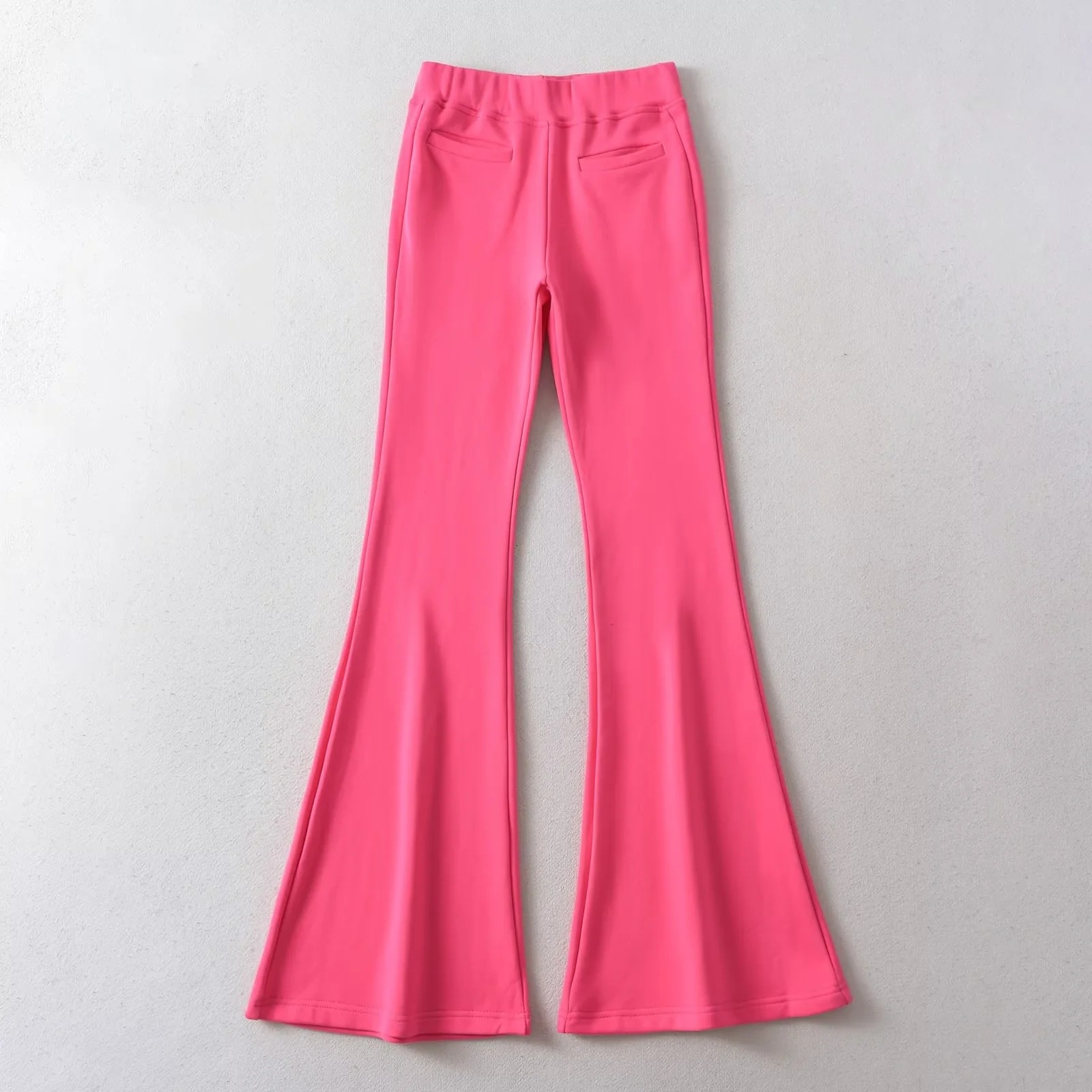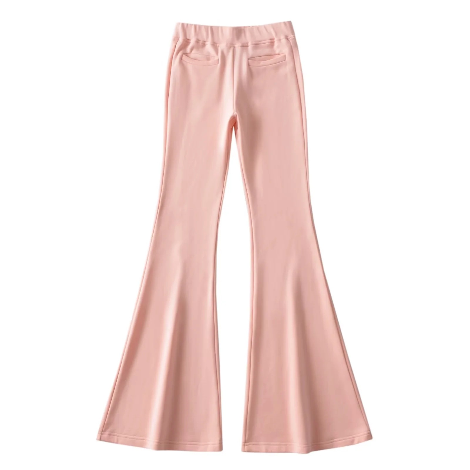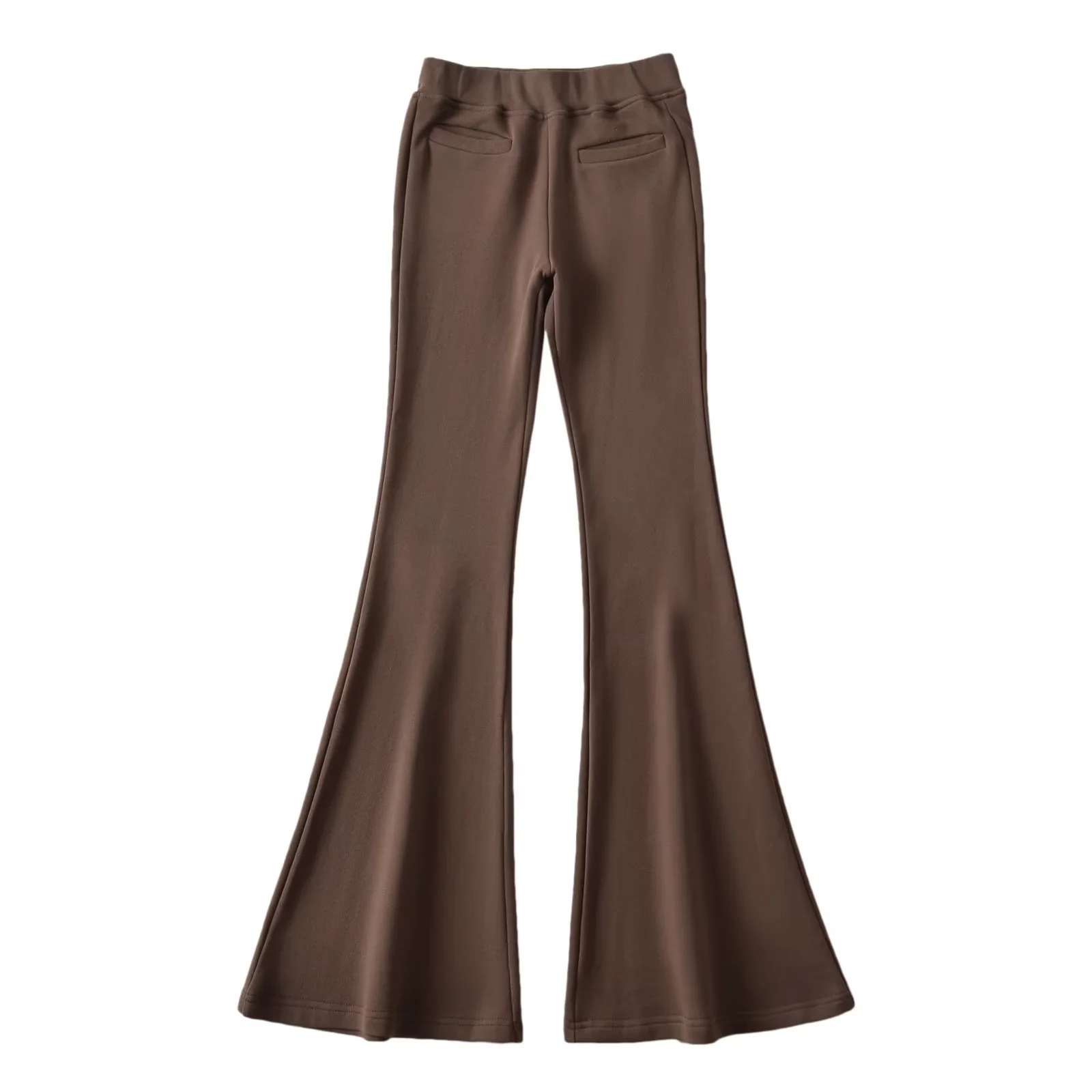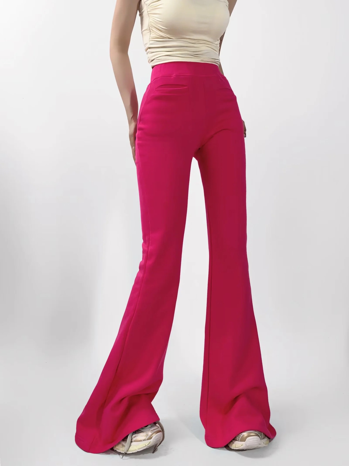 2023秋の新型ギャルの中で低い腰の修身は尻の小さいラッパのズボンの女性の純色の百合のカジュアルなモップのズボンのファッションを包みます。