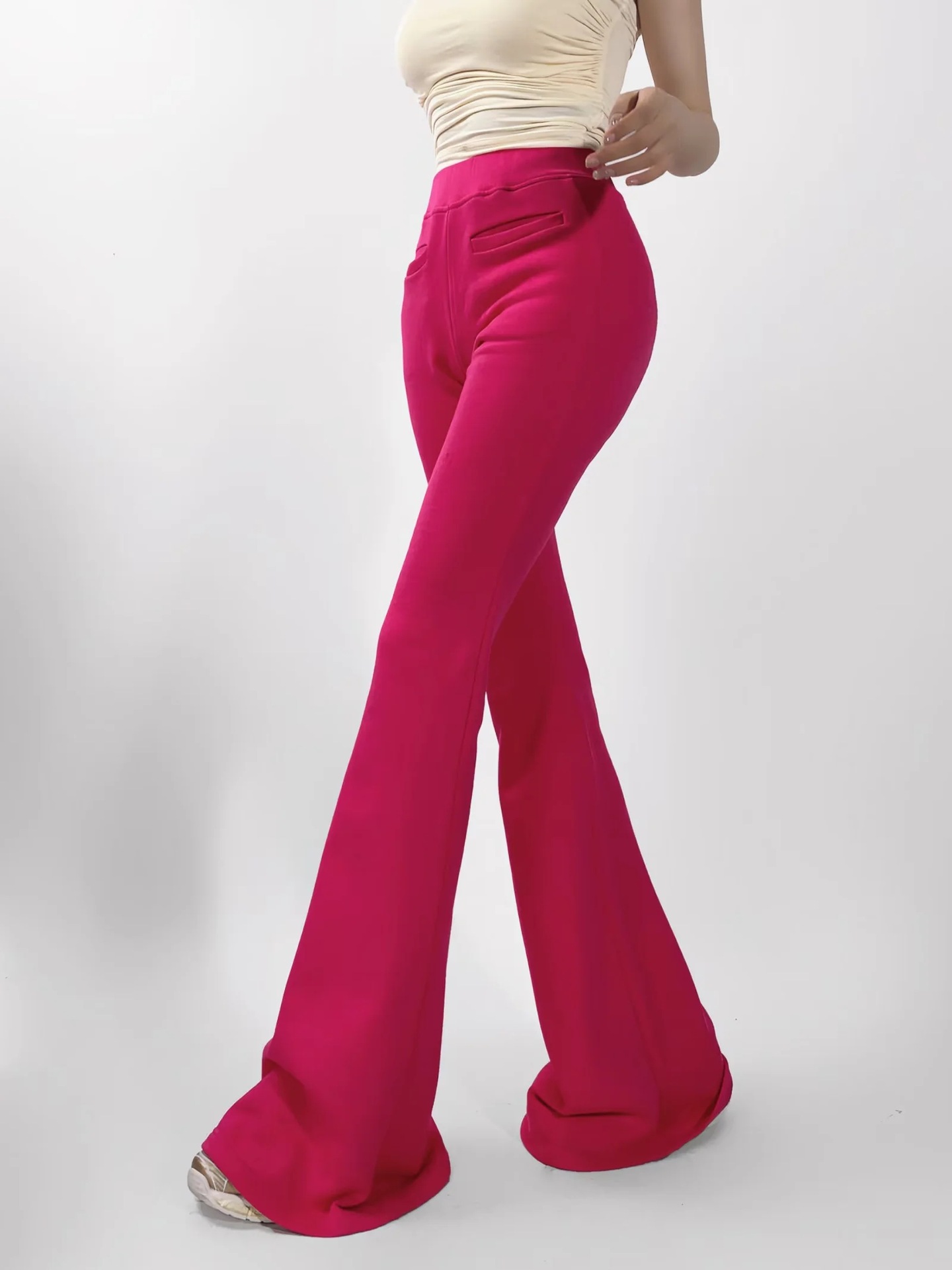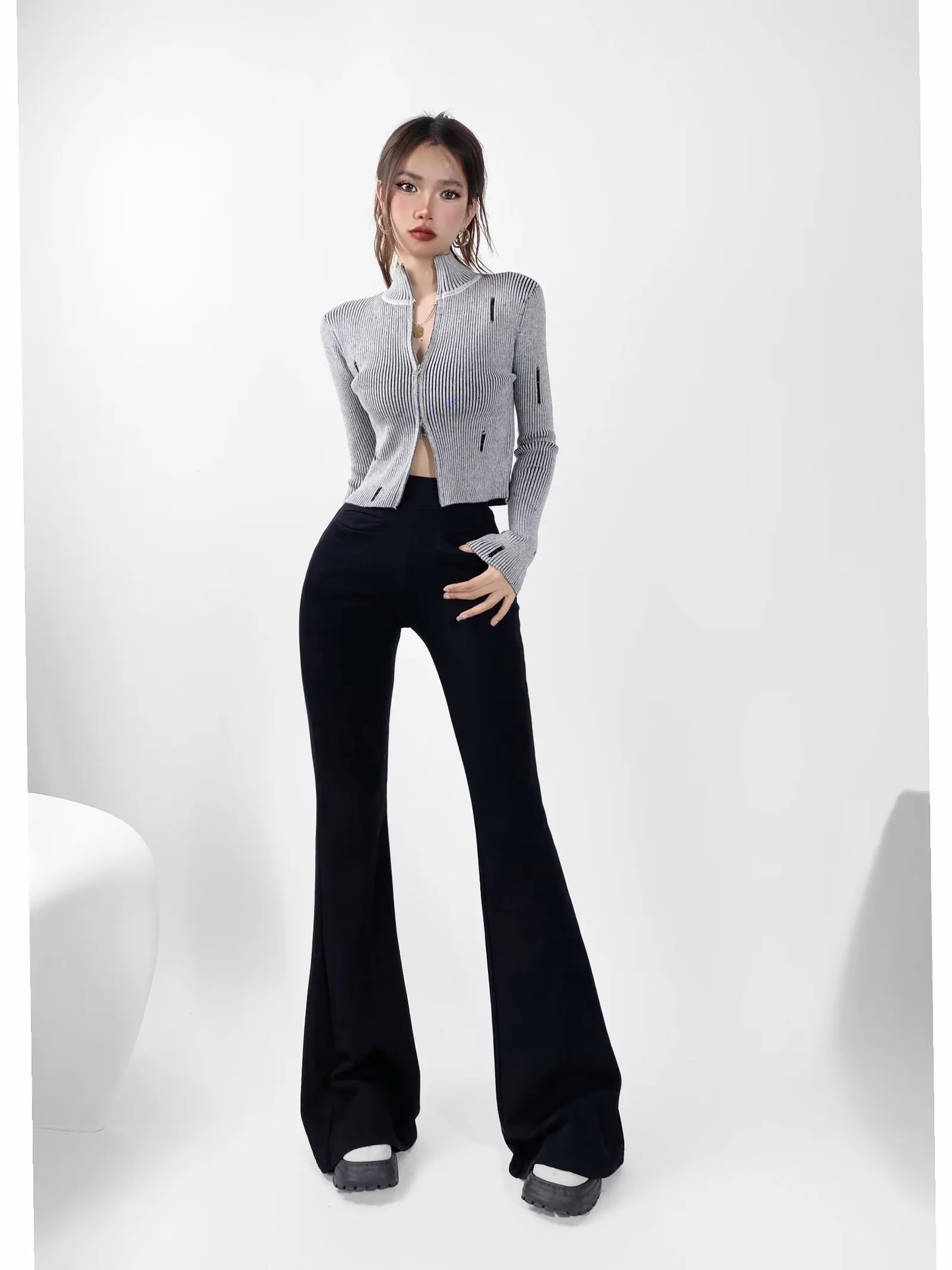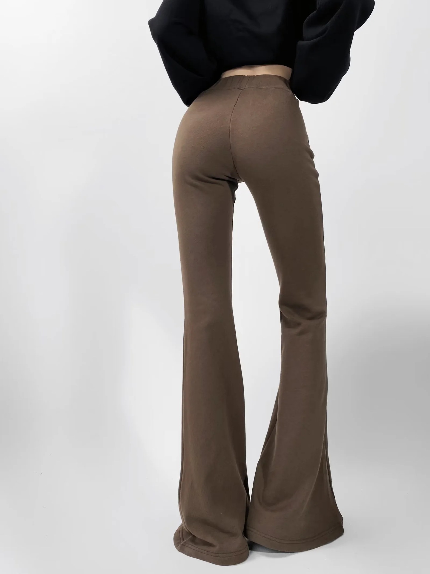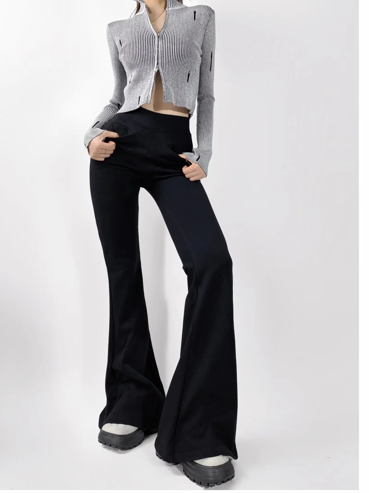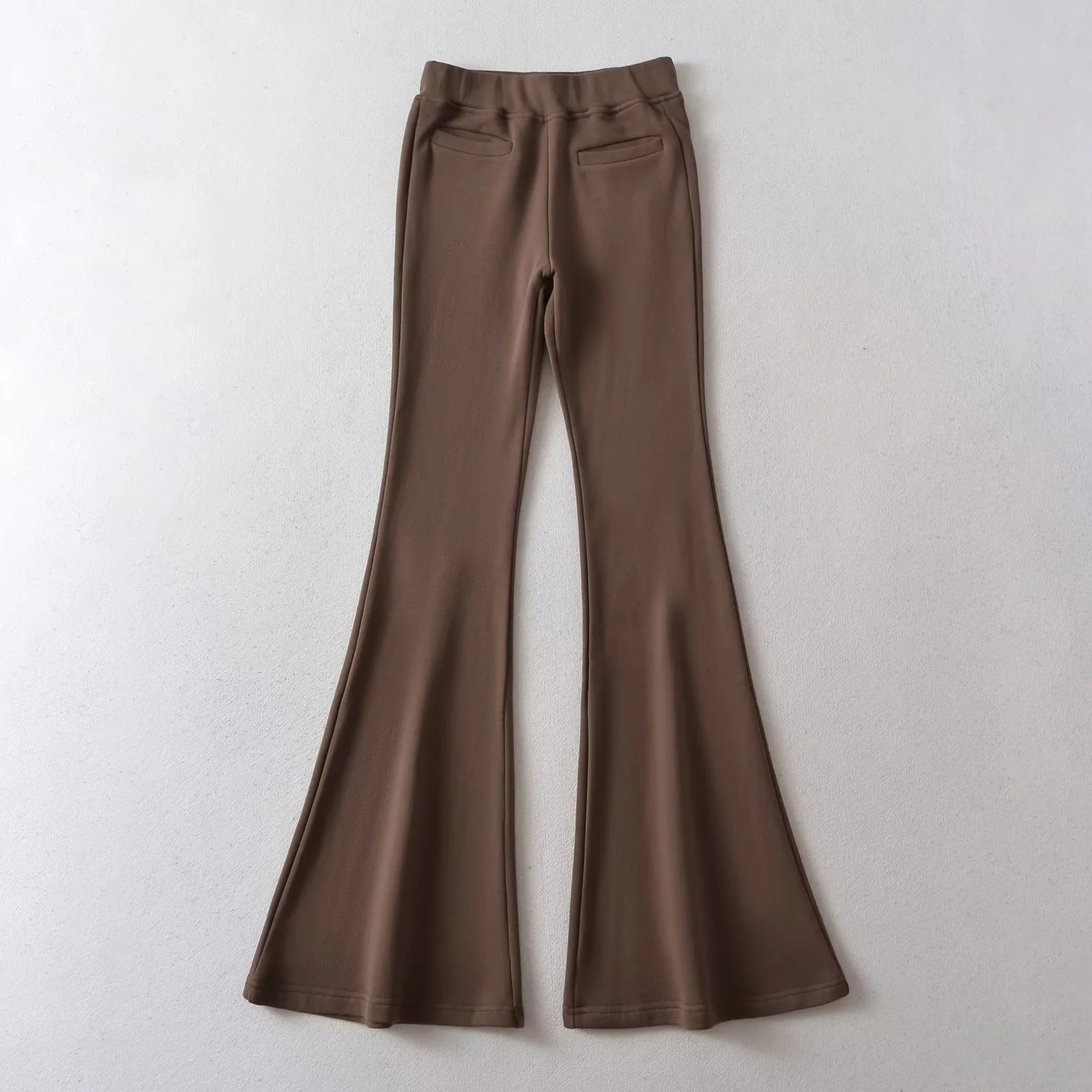 2023秋の新型ギャルの中で低い腰の修身は尻の小さいラッパのズボンの女性の純色の百合のカジュアルなモップのズボンのファッションを包みます。