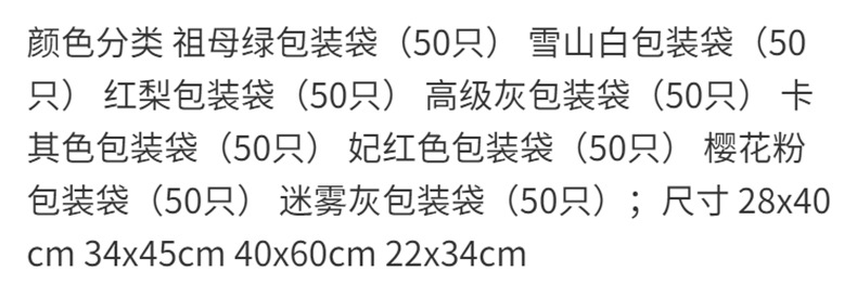 色:祖母緑包装袋サイズ: トランペット幅28*40cm満100枚のシール,色:祖母緑包装袋サイズ: 大幅34*45cm満100枚のシール,色:祖母緑包装袋サイズ: 特大幅40*60cm満100枚シール,色:雪山白包装袋サイズ: トランペット幅28*40cm満100枚のシール,色:雪山白包装袋サイズ: 大幅34*45cm満100枚シール,色:雪山白包装袋サイズ: 特大幅40*60cm満100枚シール,色: 赤梨包装袋サイズ: トランペット幅28*40cm満100枚シール,色: 赤梨包装袋サイズ: 大幅34*45cm満100枚シール,色: 赤梨包装袋サイズ: 特大幅40*60cm満100枚シール,色: 高級グレー包装袋サイズ: トランペット幅28*40cm満100枚シール,色: 高級グレー包装袋サイズ: 大幅34*45cm満100枚シール,色: 高級グレー包装袋サイズ: 特大幅40*60cm満100枚シール,色: カーキ色包装袋サイズ: トランペット幅28*40cm満100枚シール,色: カーキ色包装袋サイズ: 大幅34*45cm満100枚シール,色: カーキ色包装袋サイズ: 特大幅40*60cm満100枚シール,色:妃赤色包装袋サイズ: トランペット幅28*40cm満100枚のシール,色:妃赤色包装袋サイズ: 大幅34*45cm満100枚のシール,色:妃赤色包装袋サイズ: 特大幅40*60cm満100枚シール,色: フロスト透明色サイズ: トランペット幅28*40cm満100枚シール,色: フロスト透明色サイズ: 大幅34*45cm満100枚シール,色: フロスト透明色サイズ: 特大幅40*60cm満100枚シール