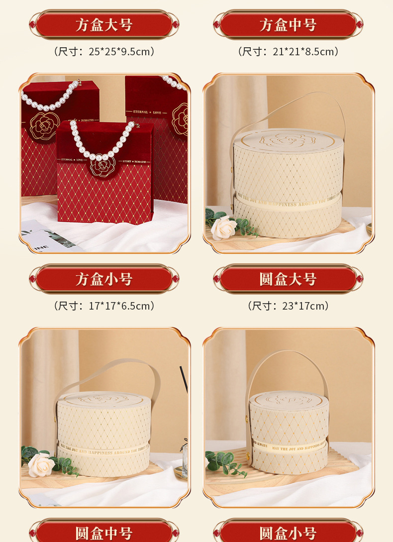 角箱サイズ25*25*9.5 * ワインレッド,角箱サイズ25*25*9.5 * シャンパン色,角箱中号21*21*8.5 * ワインレッド,角箱中号21*21*8.5 * シャンパン色,角箱トランペット17*17*6.5 * ワインレッド,角箱トランペット17*17*6.5 * シャンパン色,丸箱サイズ23*17 * ワインレッド,丸箱サイズ23*17 * シャンパン色,丸箱中号20*13.5 * ワインレッド,丸箱中号20*13.5 * シャンパン色,丸箱トランペット12*9.8 * ワインレッド,丸箱トランペット12*9.8 * シャンパン色,丸箱ミニ番号7.5*10.2 * ワインレッド,丸箱ミニ番号7.5*10.2 * シャンパン色,二重ドア19*20 * ワインレッド,二重ドア19*20 * シャンパン色