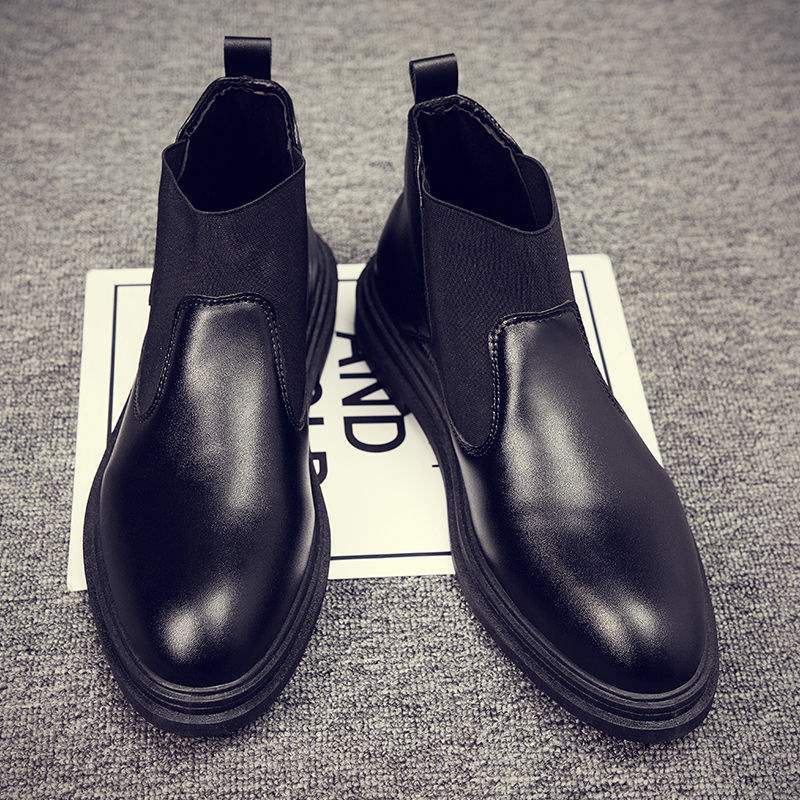 男性のチェルシーブーツの先の欧米のリングは英倫を掛けます。